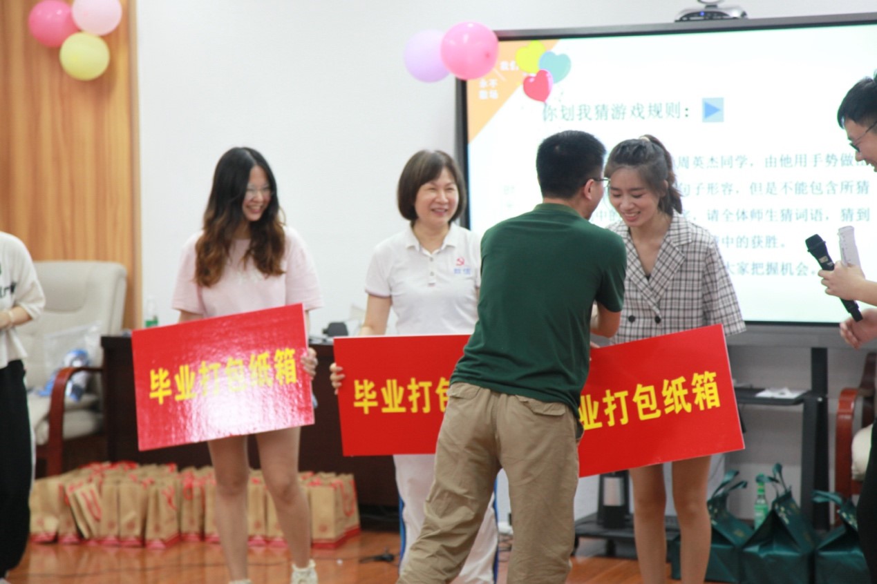 领导为毕业生赠送毕业打包纸箱