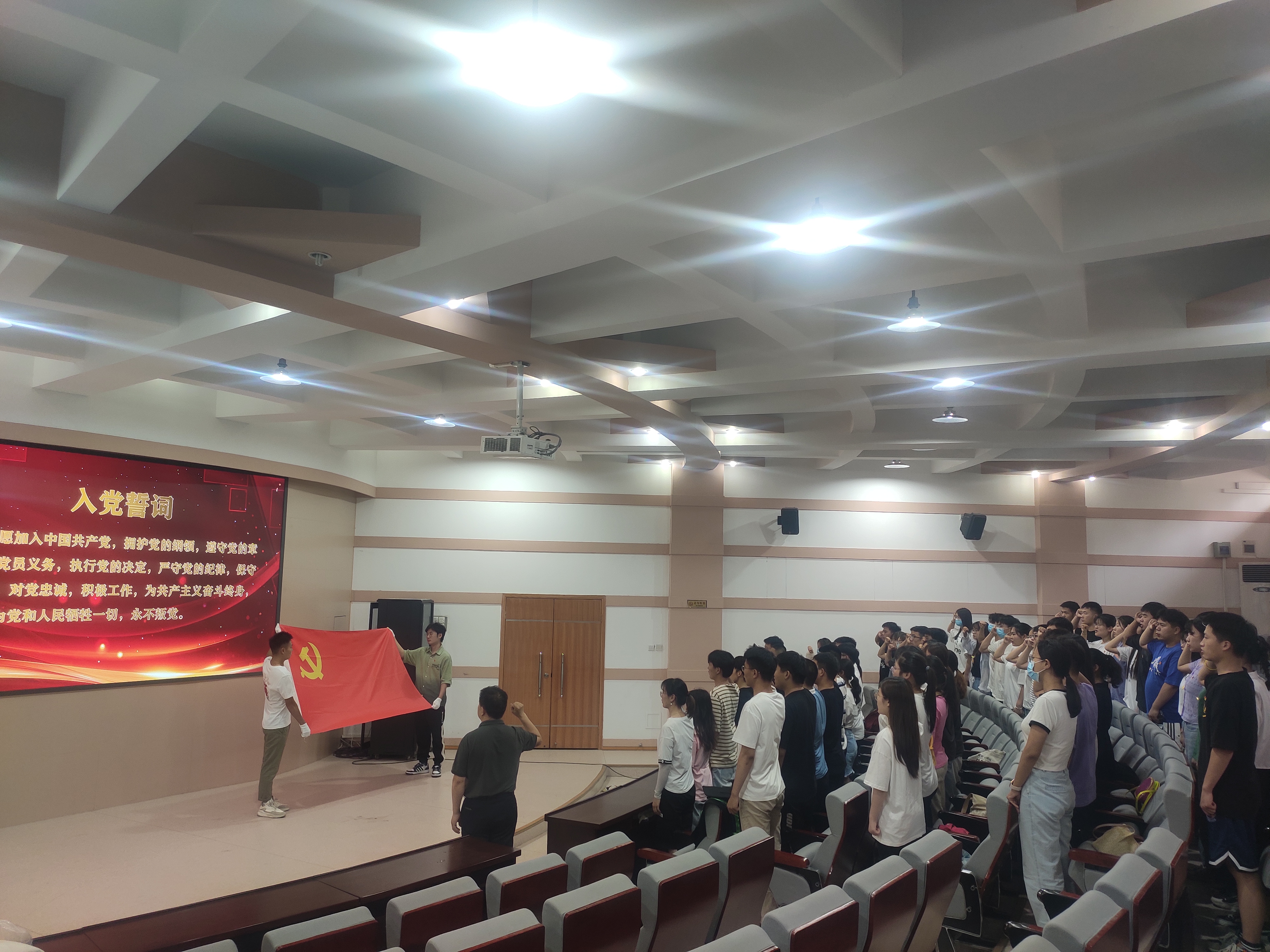于6月11日中午在文化路校区举行了庄严的新党员入党宣誓仪式。院党委书记毕庆生、院党委副书记陈景红、辅导员黄春萌以及77名新发展党员参加了本次入党宣誓仪式,仪式由陈景红主持。