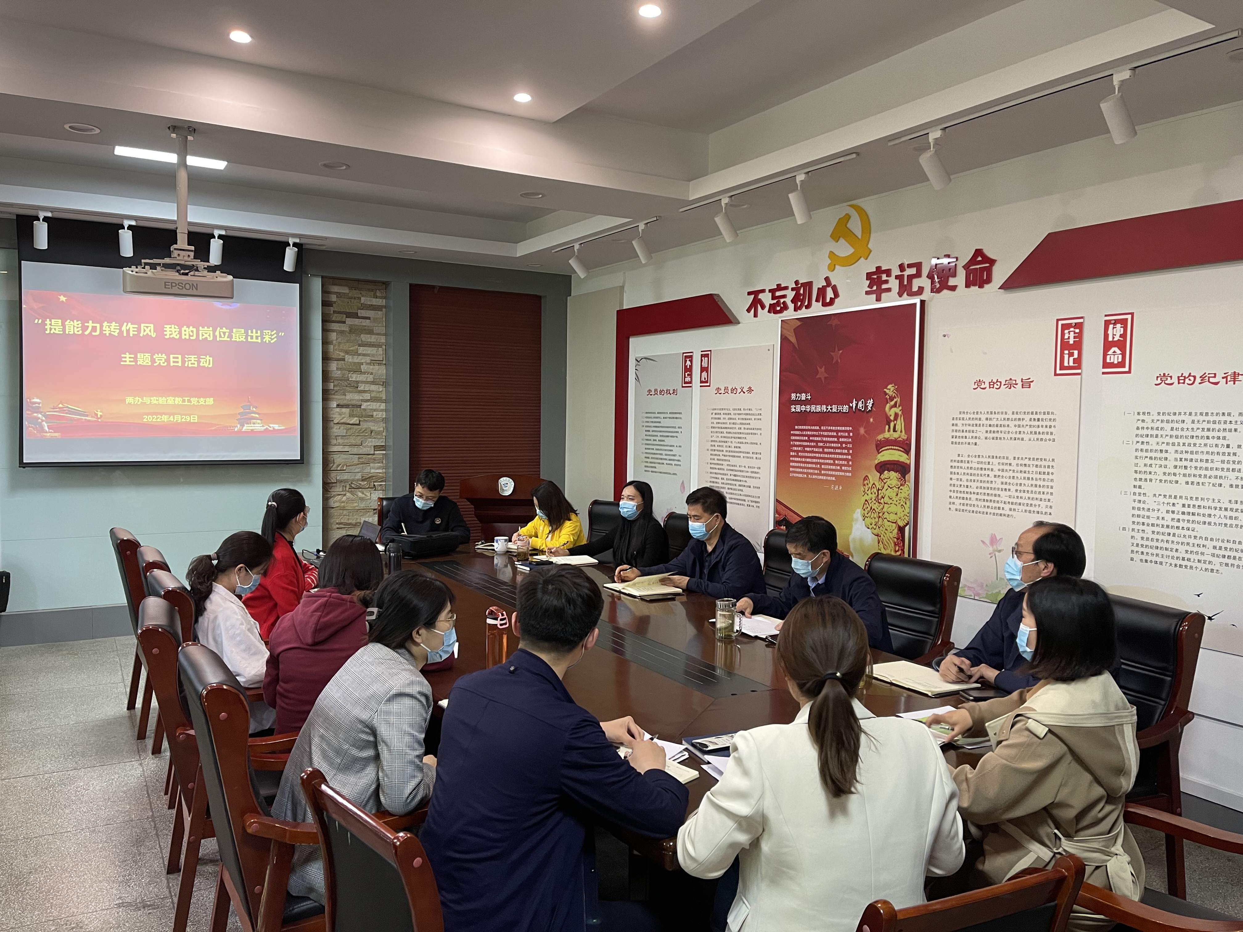 为扎实推进“能力作风建设年”活动,4月29日下午,太阳城App 两办与实验室教工党支部在院办会议室组织开展了“提能力转作风 我的岗位最出彩”主题党日活动,支部党员参加。