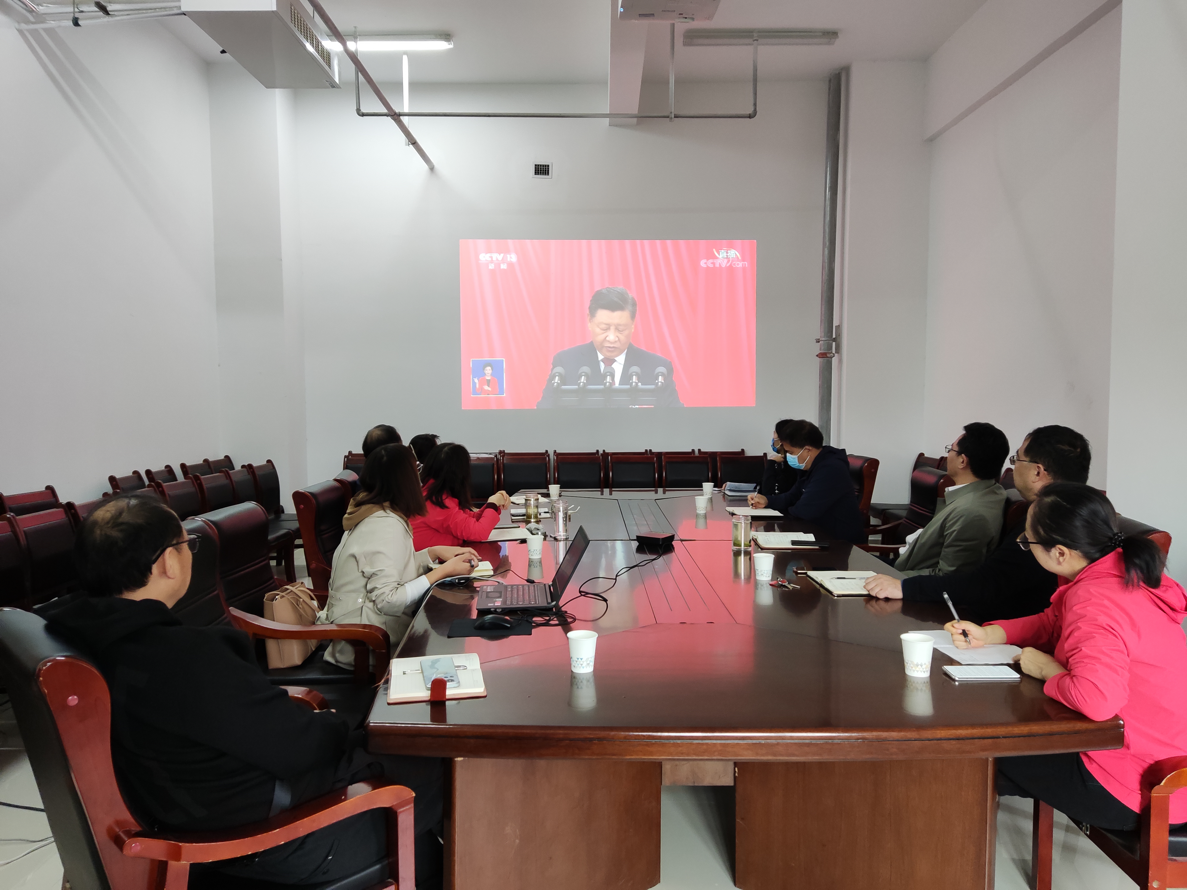 全体班子成员、党支部书记和教师代表在力行楼262会议室收听收看二十大开幕会,学习习近平总书记代表十九届中央委员会向党的二十大作的报告,交流学习体会。