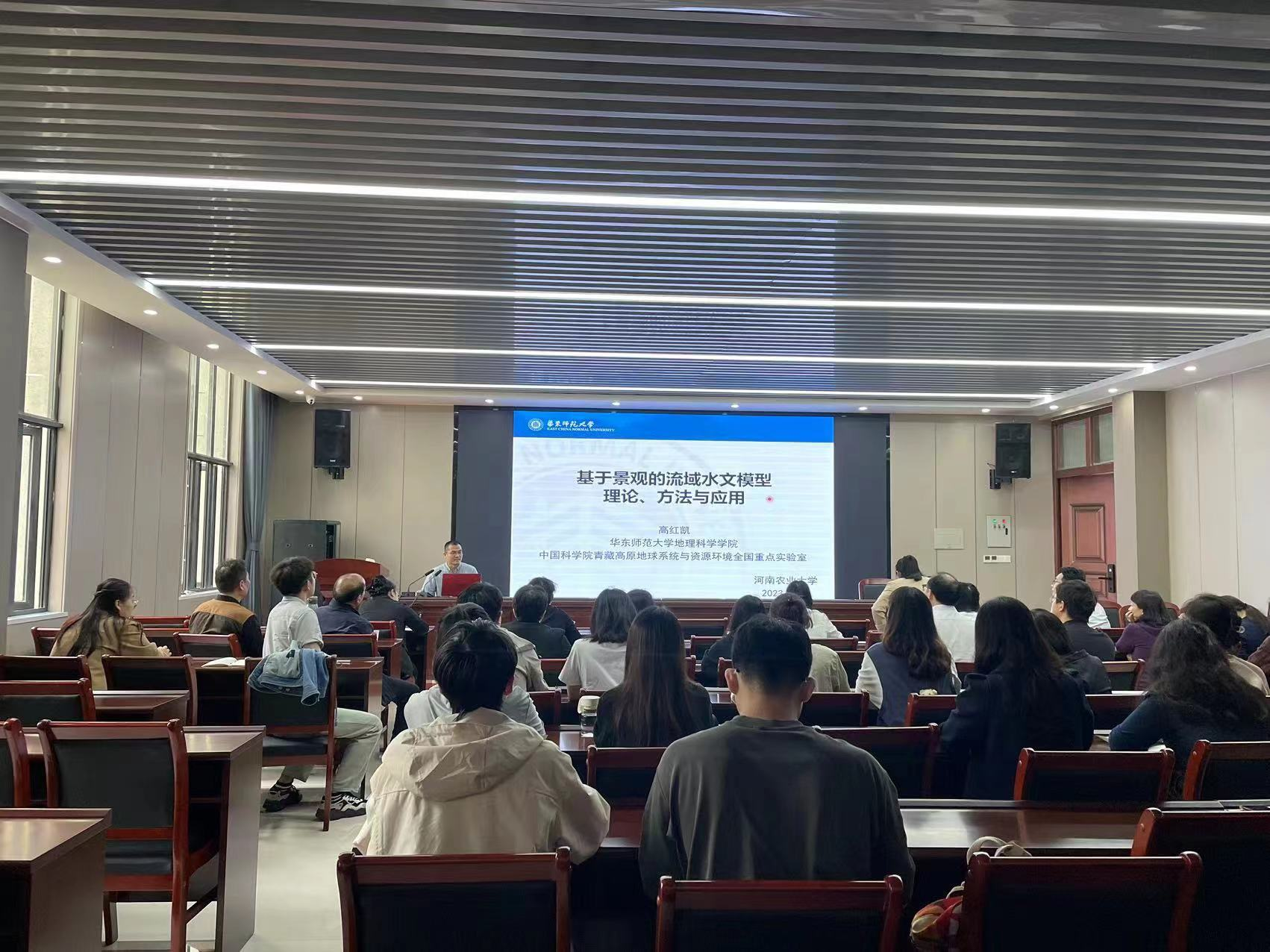 高红凯教授在第一部分以“基于景观的流域水文模型:理论、方法与应用”为题,重点介绍了团队自主研发的“最优根区理论模型”,接着高教授介绍了自己主持的四个基金申请经验,尤其是详细阐述了基金申请各部分的注意事项,以及科研成果凝练成基金申请的思路过程。在专题报告结束以后,高红凯教授与太阳城App 师生对模型构建与应用、基金申请等问题进行了深入交流。
