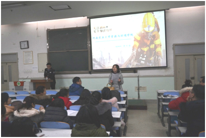 随后,郑州市消防支队宣讲团的曲志强教官为全院师生做了消防安全报告。曲教官详细讲解了常见火灾的危险性、隐患、预防对策及自防自救常识等方面的内容,通俗易懂、生动形象。他从贴近实际、实用性强的消防常识入手,认真细致地讲授了如何预防火灾、初期灭火、报警、自救和各种类型火灾的灭火常识。宣讲中,他穿插播放了部分具有代表性的防火宣传片及火灾案例,深入浅出地讲解了火灾的类型、灭火器种类和使用办法、用电安全知识、浓烟的危害、高楼防火、公共场所防火与逃生等知识。此次消防安全知识讲座,强化了师生员工消防意识。