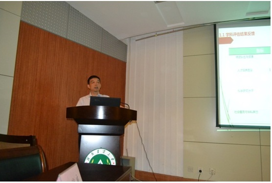 上午,赵鹏院长就农业资源与环境学科和学位建设现状进行了汇报。赵院长从师资队伍、支撑平台、人才培养、科学研究、社会服务、学科声誉等方面介绍了学科的基本情况,并根据教育部学位中心第四轮评估学科评估结果,对学科现状进行了分析。在科学分析本学科优势和不足的基础上,赵鹏院长提出了“发挥优势、补足短板”的原则,在此基础上规划了未来三年(2018-2020年)的建设目标和建设内容,并在论文发表、科研项目、科研奖励、 教学奖励、开放课程、专著教材、全国学术会议、国际交流、专家报告、发明专利等方面进行了任务分解。下午,李玲教授也就以上方面对公共管理学科发展现状进行了汇报,并介绍了三年建设目标、建设内容、任务分解情况。