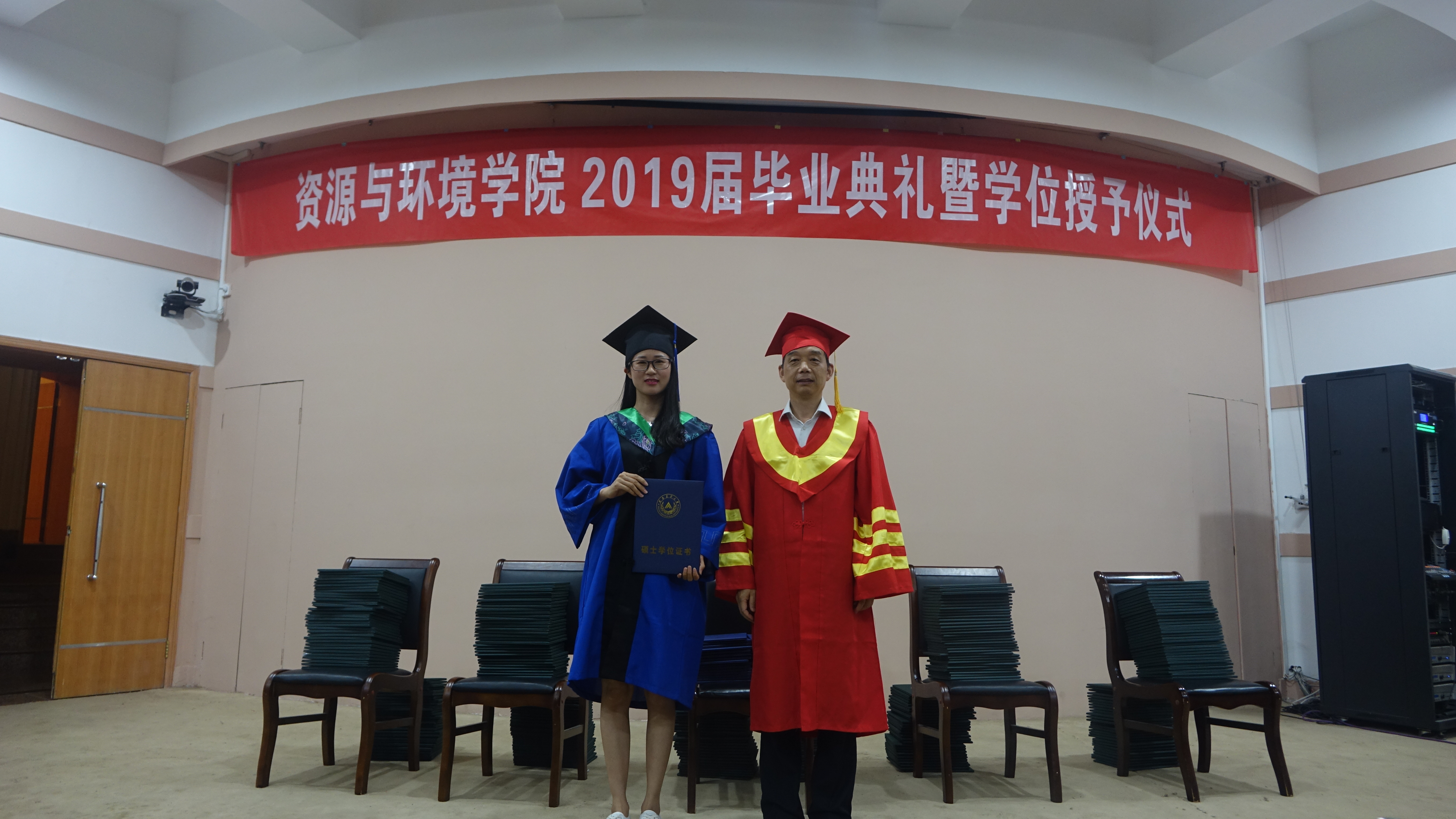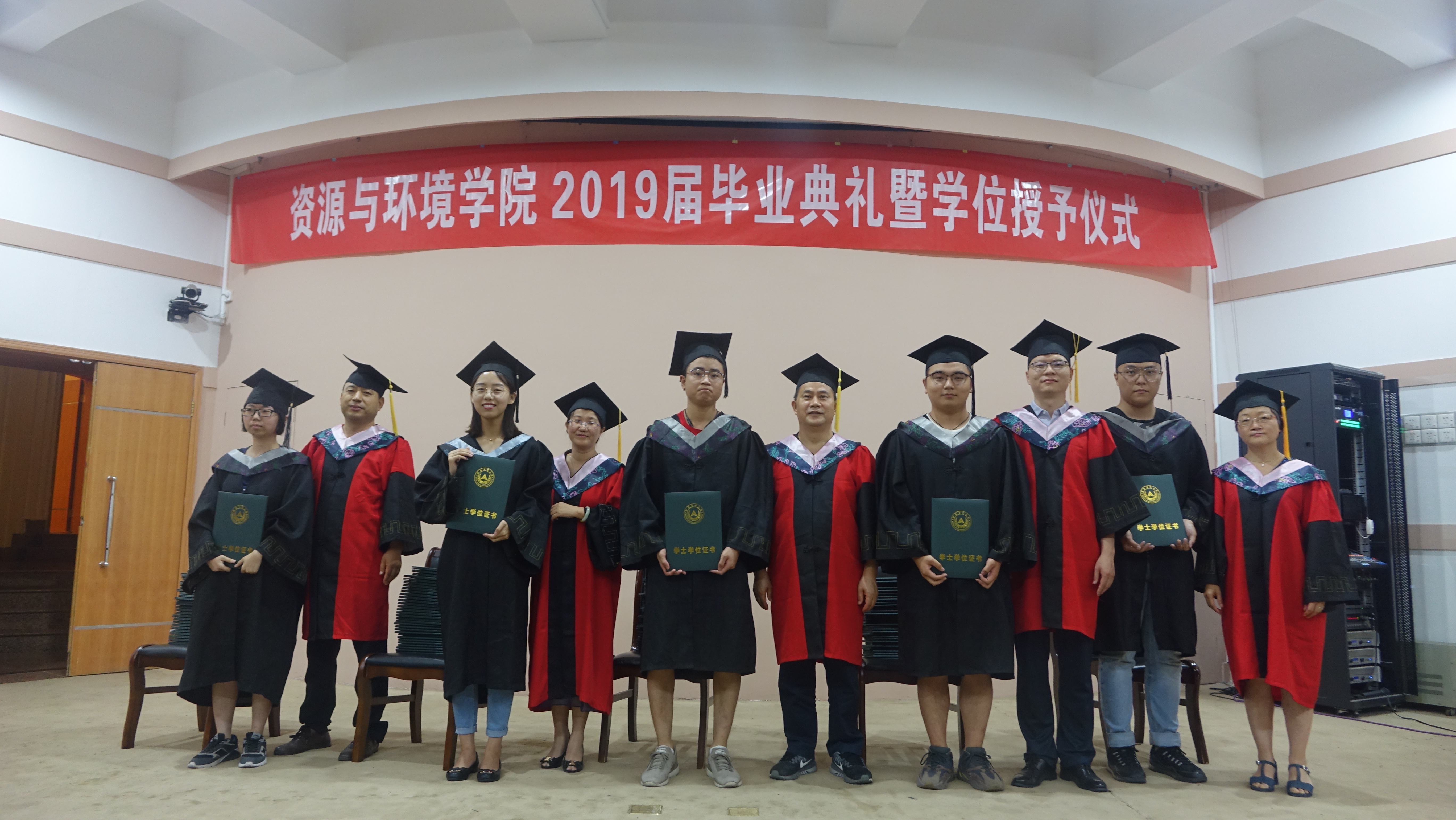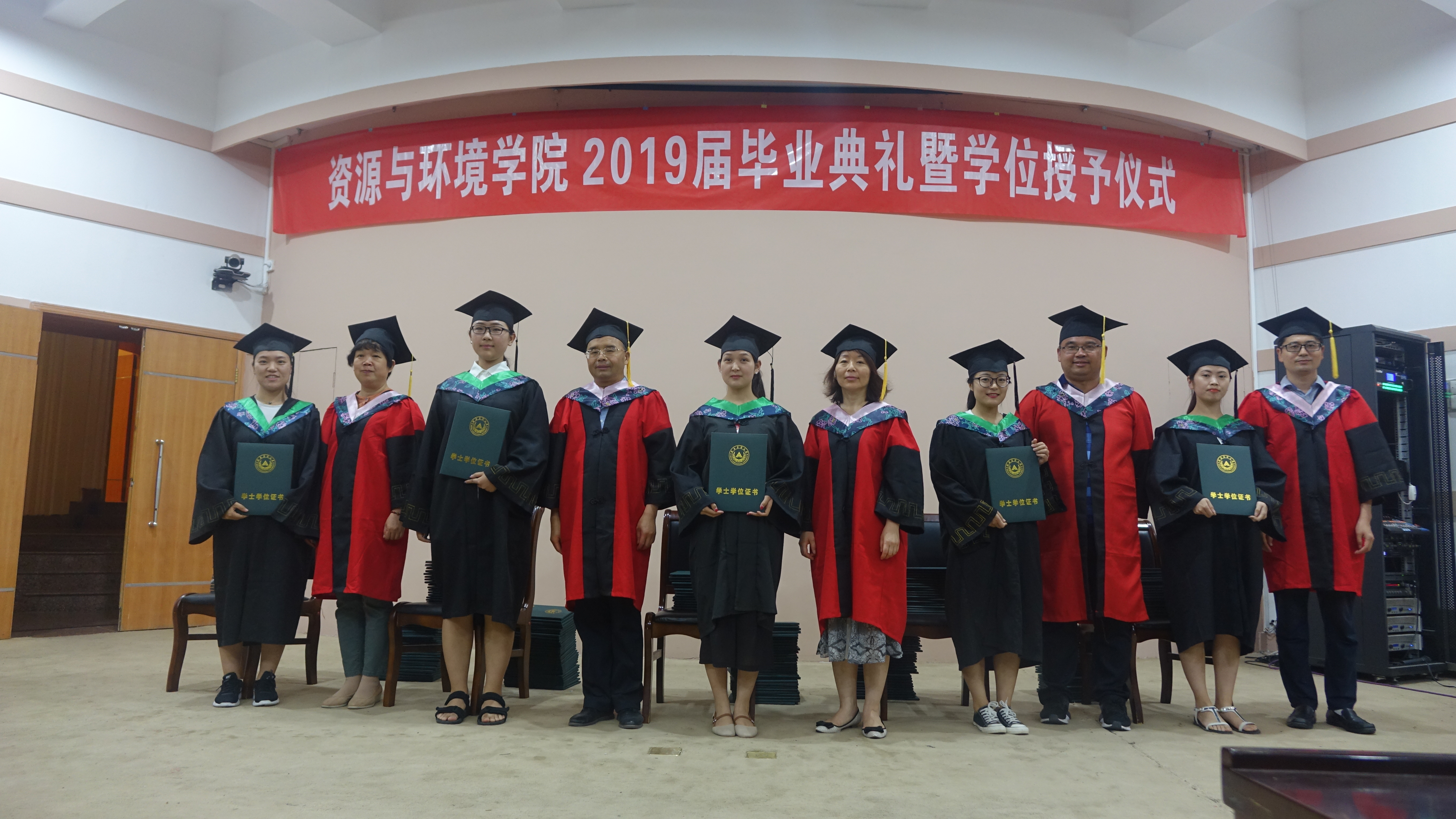 学位授予仪式上,伴随着欢快的乐曲声,全体院领导为研究生毕业生、本科生毕业生颁发学位证书、拨流苏,最后进行合影留念。