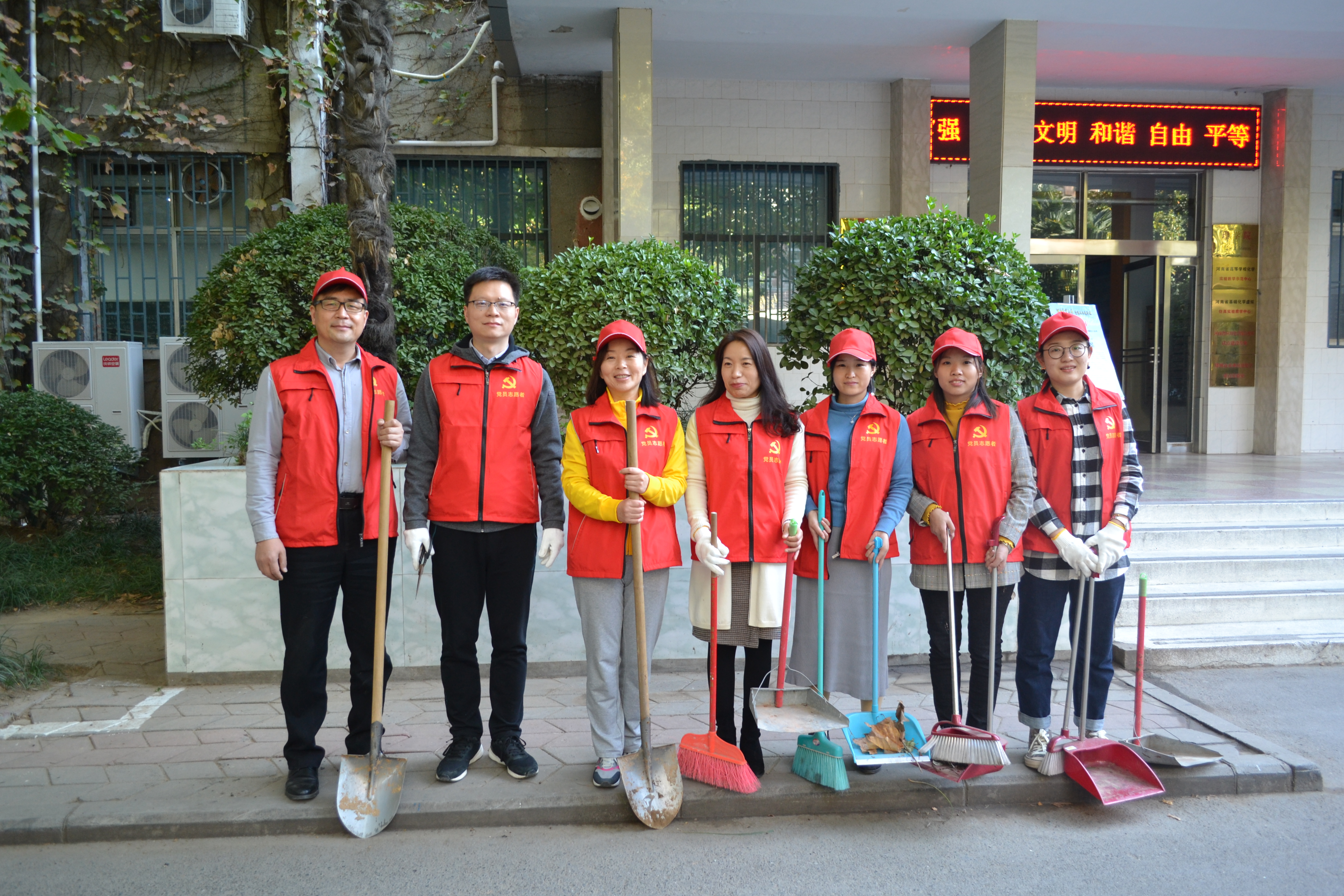 下午三点支部党员开始活动。本次志愿活动内容是清理文化路校区18号楼周边的卫生, 18号楼是一幢已有三四十年历史的旧楼,硬件设施配套较差,隐藏很多卫生死角。大家先从一楼大厅开始,仔细检查清扫,重点清理了花坛底部草丛以及楼前草坪上长期积攒的各种垃圾,精心擦拭了花坛的台面,修剪了部分绿化带的枯枝败叶。经过近一个小时的整理,楼前的面貌明显改观,靓丽而又舒心。