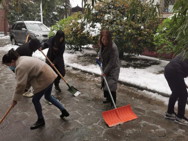 瑞雪满校园 扫雪暖人心-太阳城App 师生开展扫雪活动