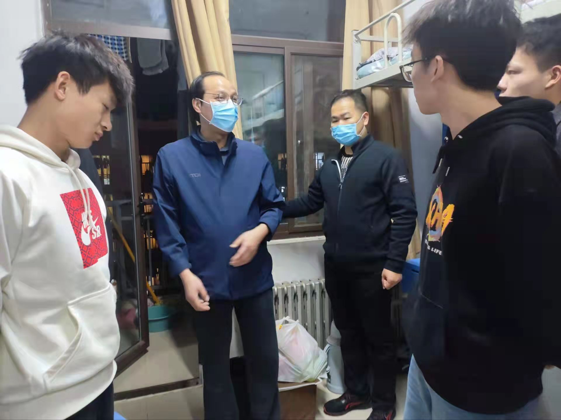 党委书记毕庆生、副书记陈景红、副院长刘世亮、副院长李玲以及团委辅导员老师于2022年3月7日深入学生宿舍进行春季安全隐患排查。