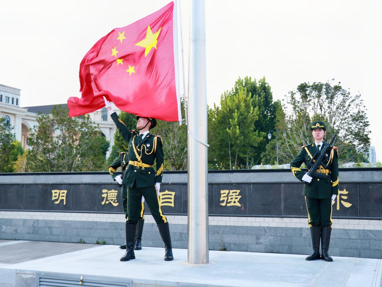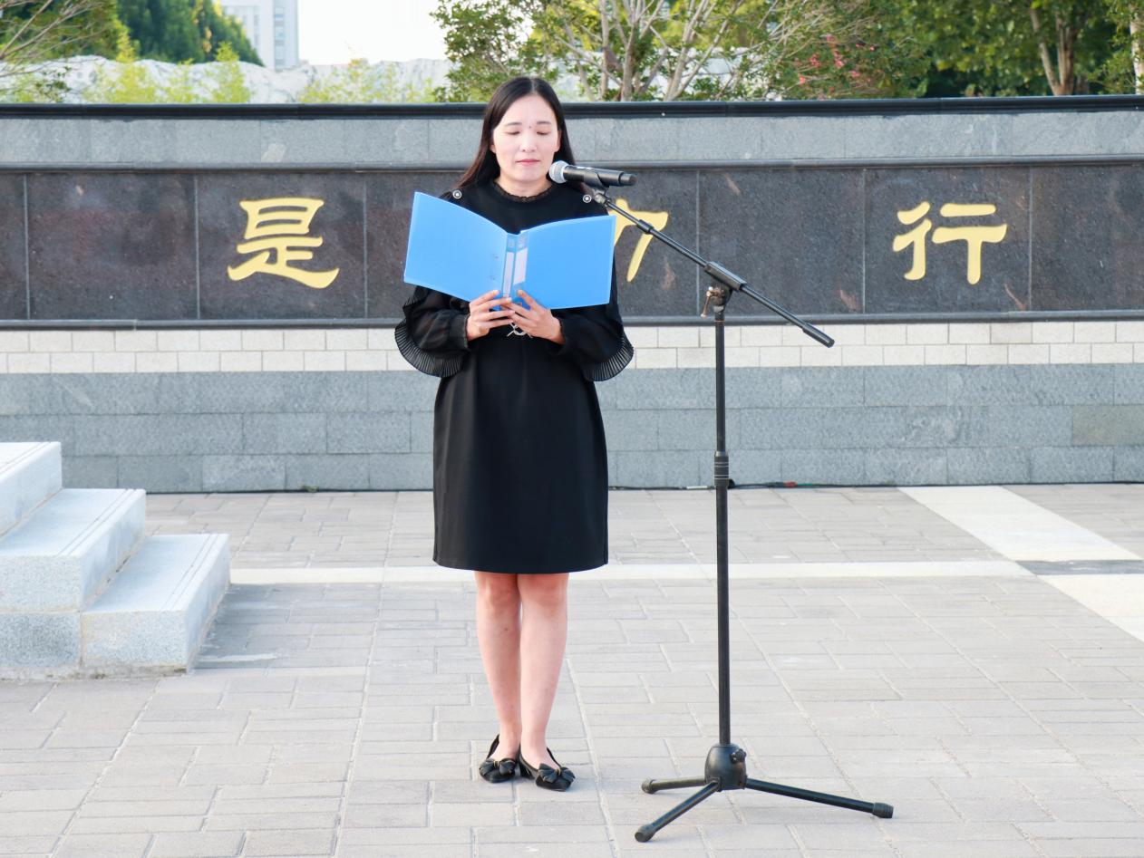于龙子湖校区中心广场举行“铭记历史,奋斗未来”主题升国旗仪式,仪式由副院长杨璟主持。