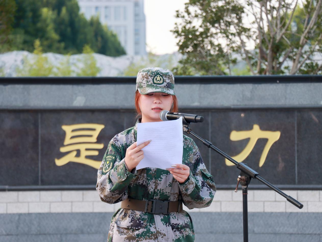 7时整,升旗仪式正式开始。国歌奏响,全体师生向冉冉升起的五星红旗行注目礼。国旗下,全体师生为抗日战争中牺牲的英烈和遇难同胞默哀。随后,退役学生代表申雅芳进行“青春无悔报国志”主题演讲,并表示新时代青年要树立居安思危的忧患意识,不断锤炼自身本领,努力在中华民族伟大复兴的进程中绽放青春光彩。