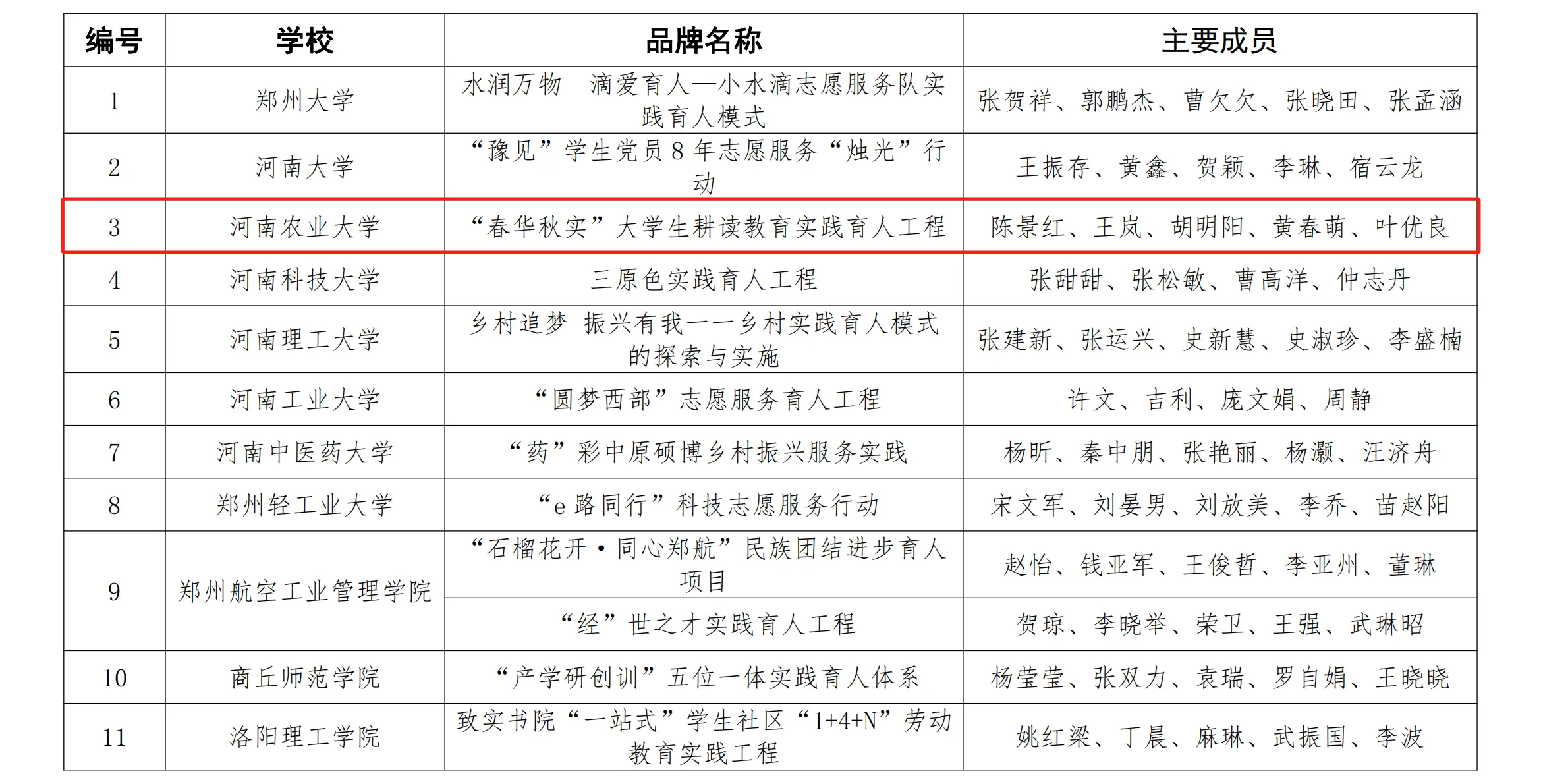 “春华秋实”大学生耕读教育实践育人工程获评“2023年度全省高校思想政治工作优秀品牌”。
