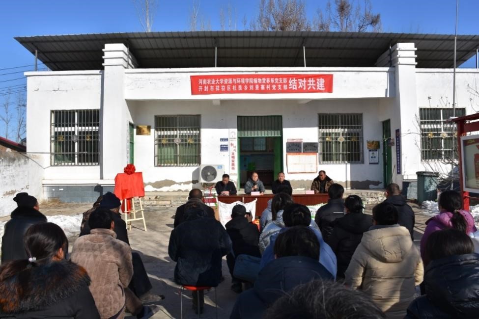 植物营养系党支部与开封市祥符区杜良乡刘景寨村党支部进行结对共建。杜良乡党委书记杨德丰、刘景寨村党支部书记支天刚、植物营养系党支部书记李慧、部分师生党员和村民代表参加了本次活动,祥符区农科所书记张剑辉主持。