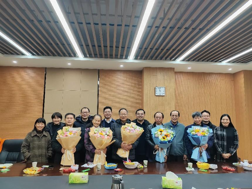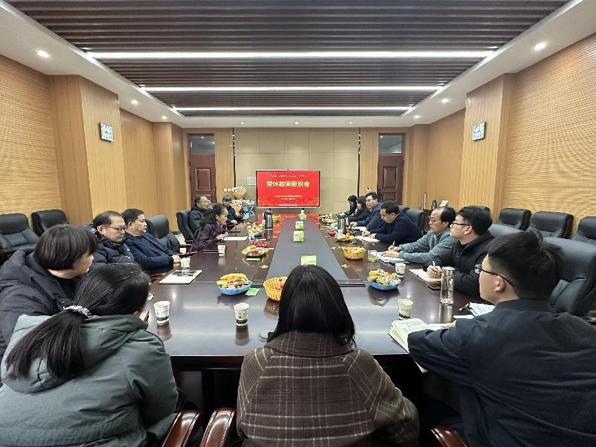 在力行楼中254会议室举行荣休教师座谈会。杨素勤、孟祥远、王文亮、毕庆生、朱嘉伟五位荣休教师,太阳城App