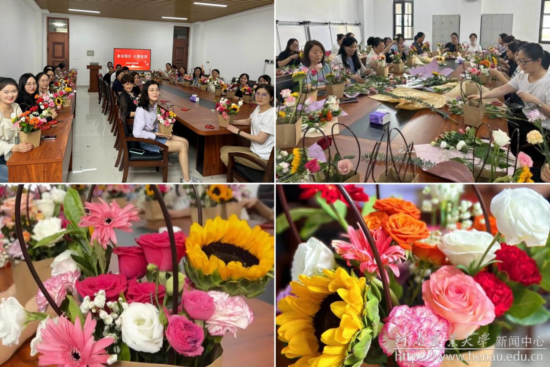 活动现场,各种鲜艳的花朵摆满桌面,如一片绚丽的花海。专业花艺师详细讲解了插花的基本知识与技巧,包括花材选择、色彩搭配、造型构思等。老师们充分发挥自己的创造力和想象力,创作了一件件富有层次感和美感的花艺作品。花篮在老师们的手中逐渐成形,每一朵花、每一片叶都承载着对祖国的热爱和对教育事业的深厚感情。