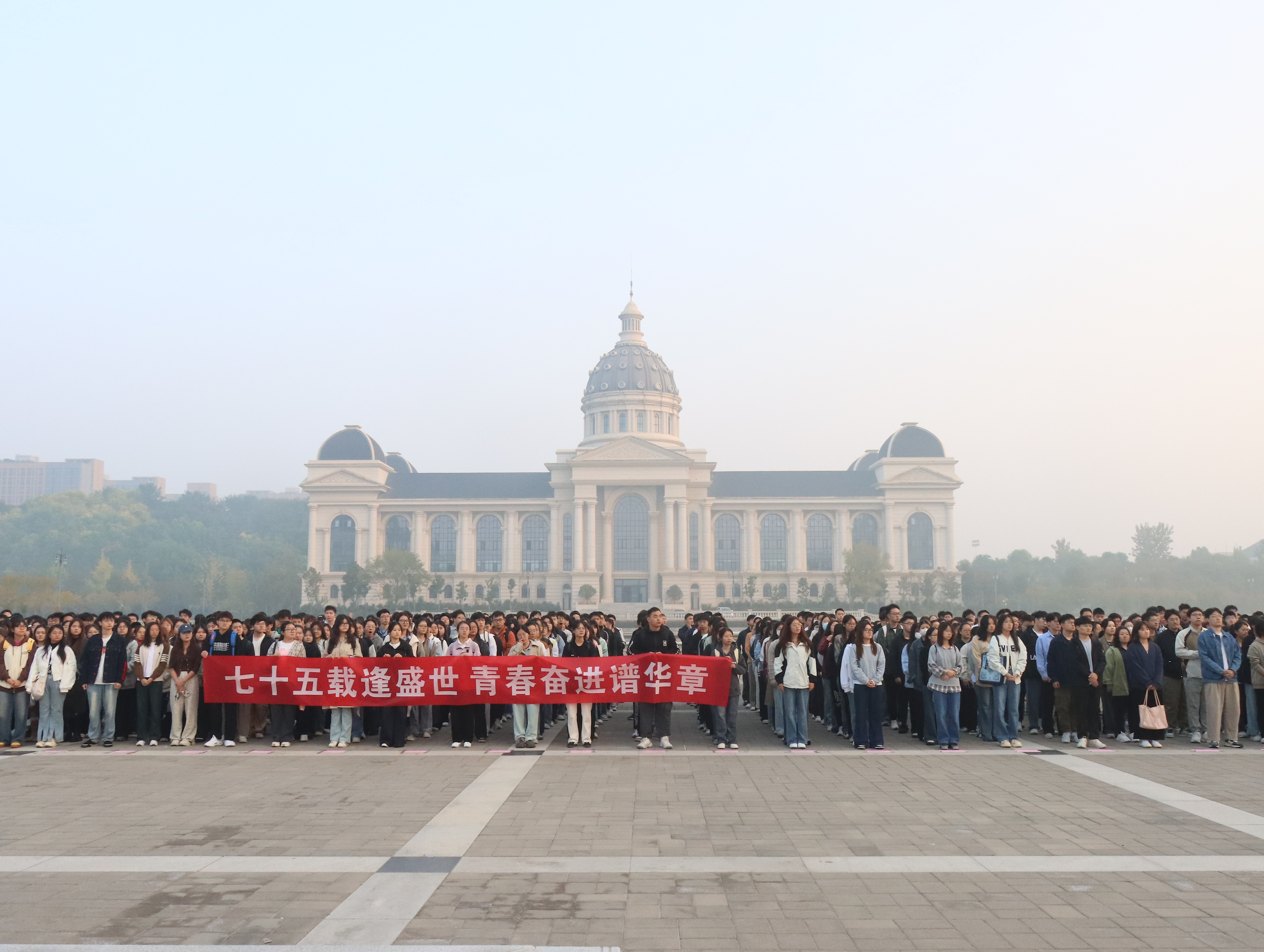 于龙子湖校区举行“七十五载逢盛世,青春奋进谱华章”主题升旗仪式。太阳城App