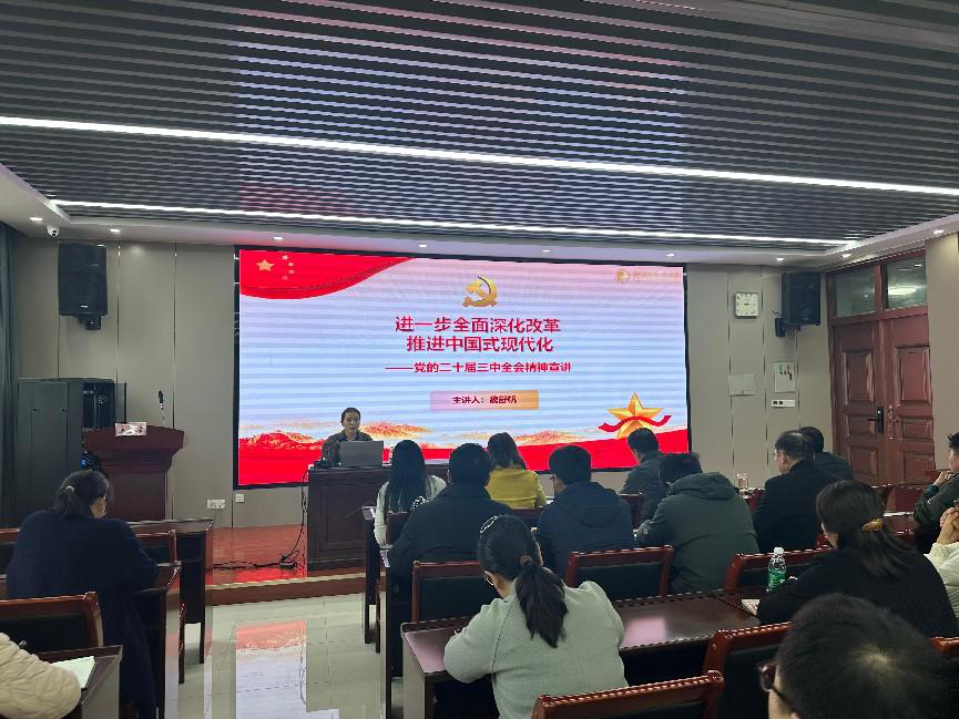 宣讲会上,魏老师围绕党的二十届三中全会召开盛况、深入学习领会习近平总书记在党的二十届三中全会上的重要讲话精神、全面准确理解《决定》提出的进一步全面深化改革重大举措、以钉钉子精神抓好改革落实四个方面,进行了深入浅出的阐述。同时,魏老师结合当前国内外形势和太阳城App 的发展实际,鼓励师生们要把思想和行动相统一,立足本职岗位,积极投身到全面深化改革的伟大实践中去。整场报告内容全面系统、脉络清晰,与会师生纷纷表示本次学习受益匪浅。