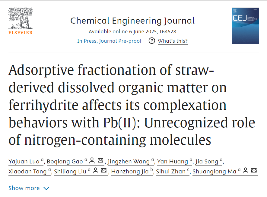 秸秆还田作为绿色农业策略可提升土壤质量,但不同处理方式(直接还田、炭化还田、粪肥堆肥还田)产生的溶解性有机质(DOM)组分差异显著,其在土壤和水体中通过吸附分馏作用影响重金属迁移。铁氧化物(如水铁矿)对DOM的吸附分馏可能改变DOM与Pb(II)的络合行为,但含氮分子在分馏过程中的作用机制尚不明确。