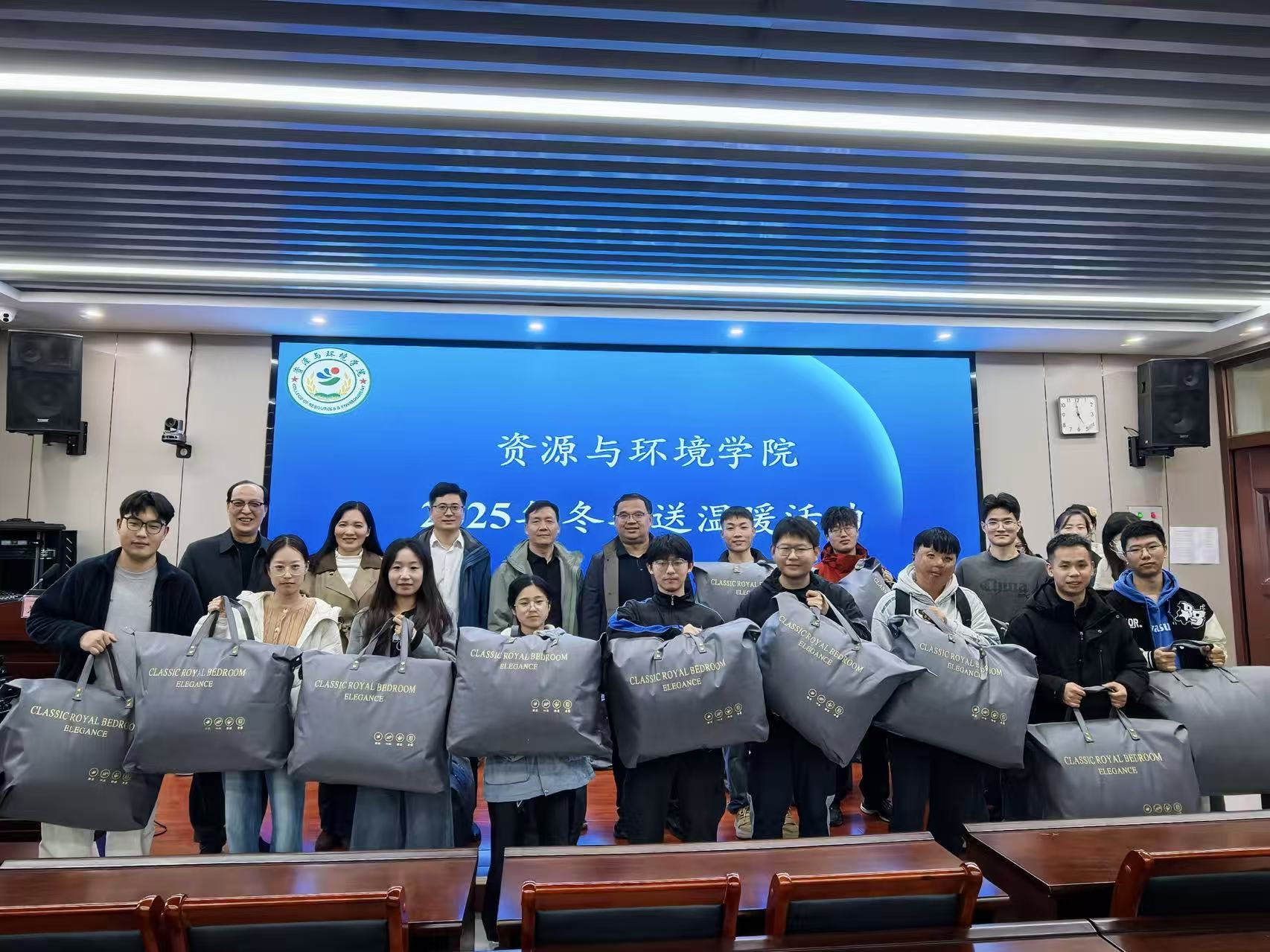 领导老师们将一条条厚棉被送到学生怀里,并与现场同学进行亲切交流,深入了解大家的日常生活与学习适应情况,同时勉励大家明确学习目标、做好学业规划,在农大校园茁壮成长。同学们纷纷表示,要把这份关怀牢记心间,不辜负老师们的殷切期望,早日成长成才。