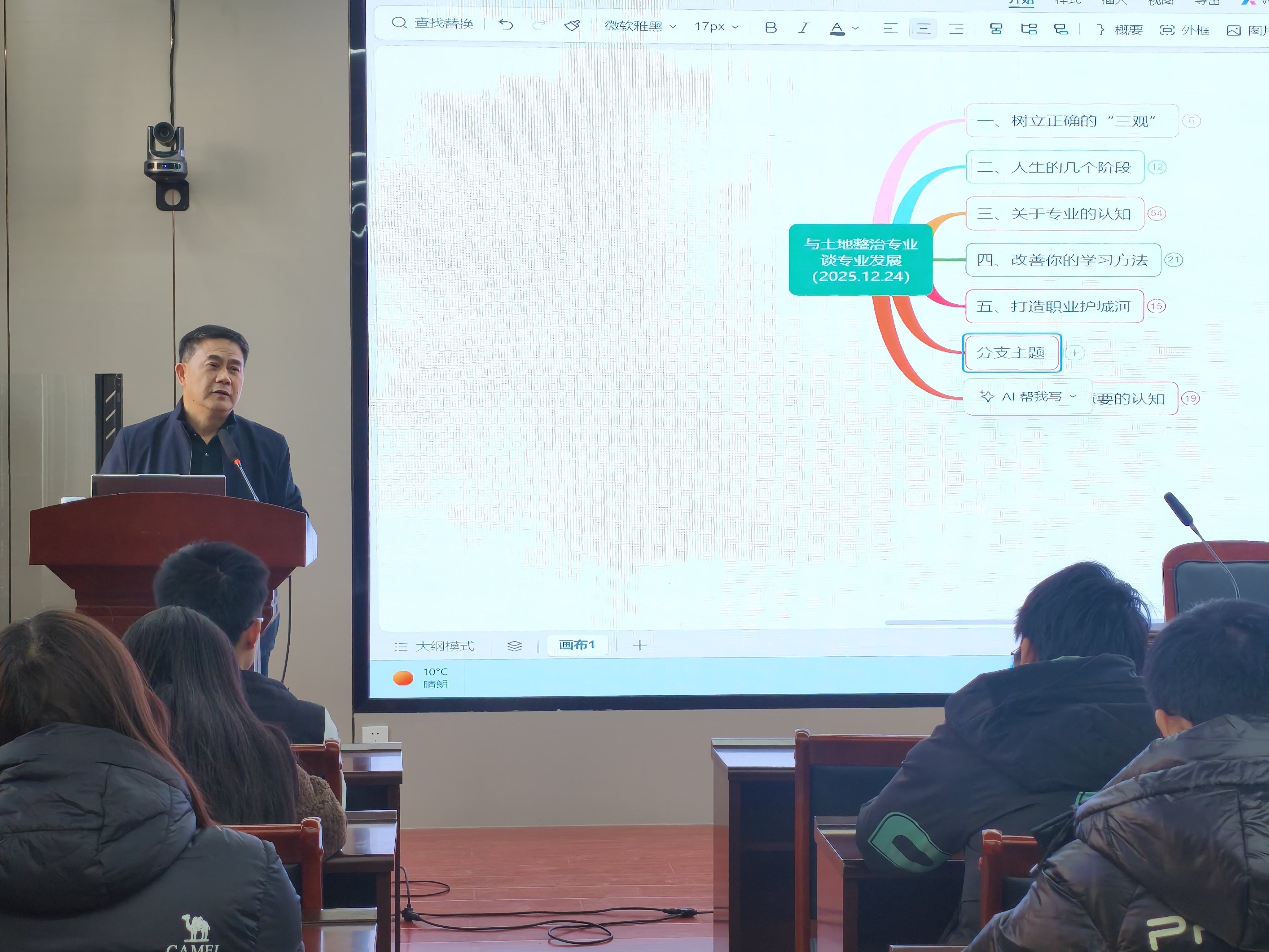 本次主题报告聚焦专业认同与职业规划,为学生提供了从价值观塑造到实践能力提升的全方位指导,既巩固了学生的专业思想,也为他们未来投身土地整治领域、服务国家生态文明建设奠定了坚实基础。