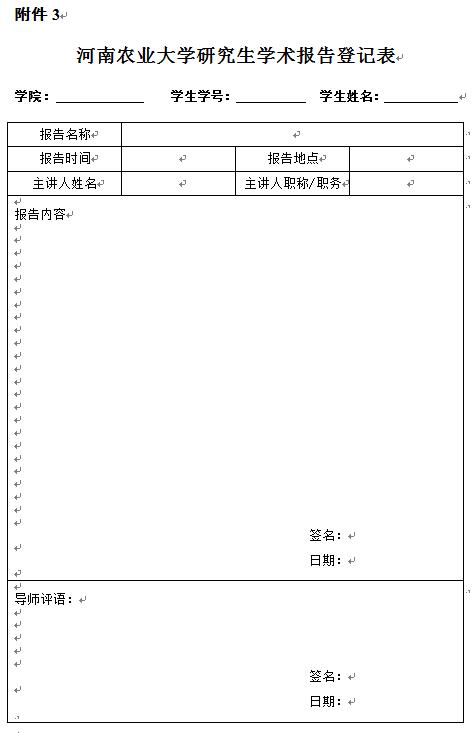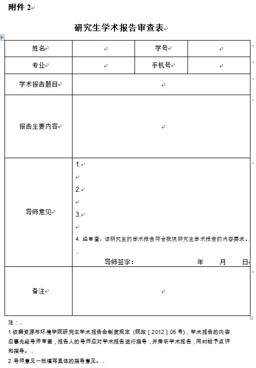 请相关研究生做好前期准备工作,将《研究生学术报告审查表》(附件2)于本学期第一次报告会时统一交至吴名宇老师处。在本人报告会后,将《太阳城App 研究生学术报告登记表》(附件3)交至吴名宇老师处汇总。