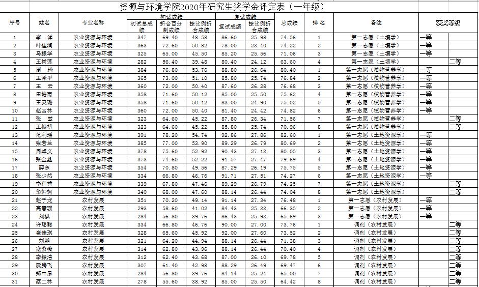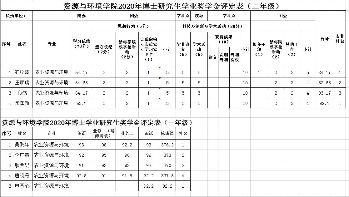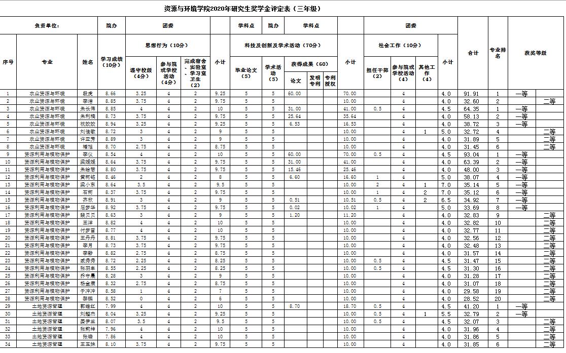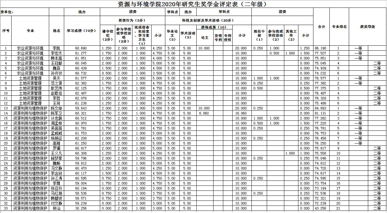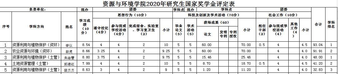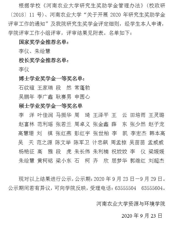 太阳城App 2020年硕士研究生国家奖学金、校长奖学金、博士学业奖学金、硕士学业奖学金 评审结果公示