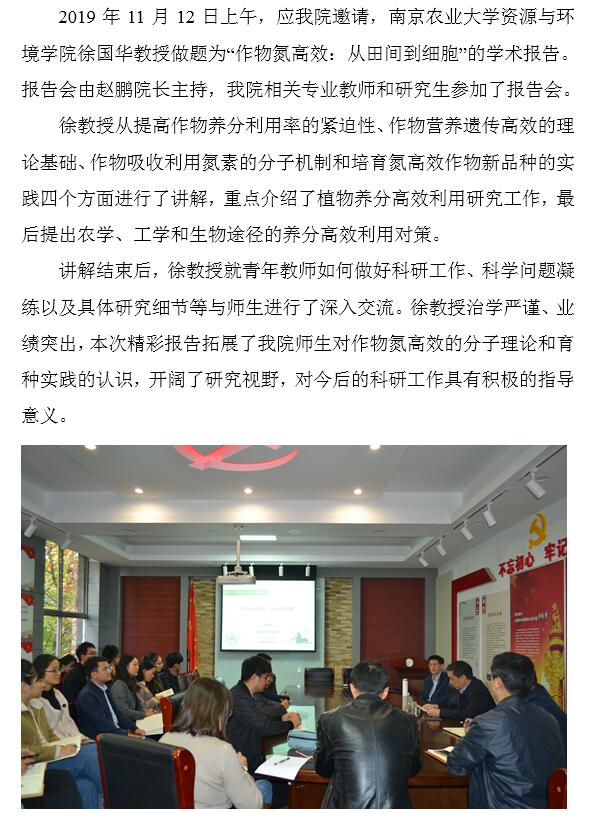 南京农业大学徐国华教授为太阳城App 师生作学术报告