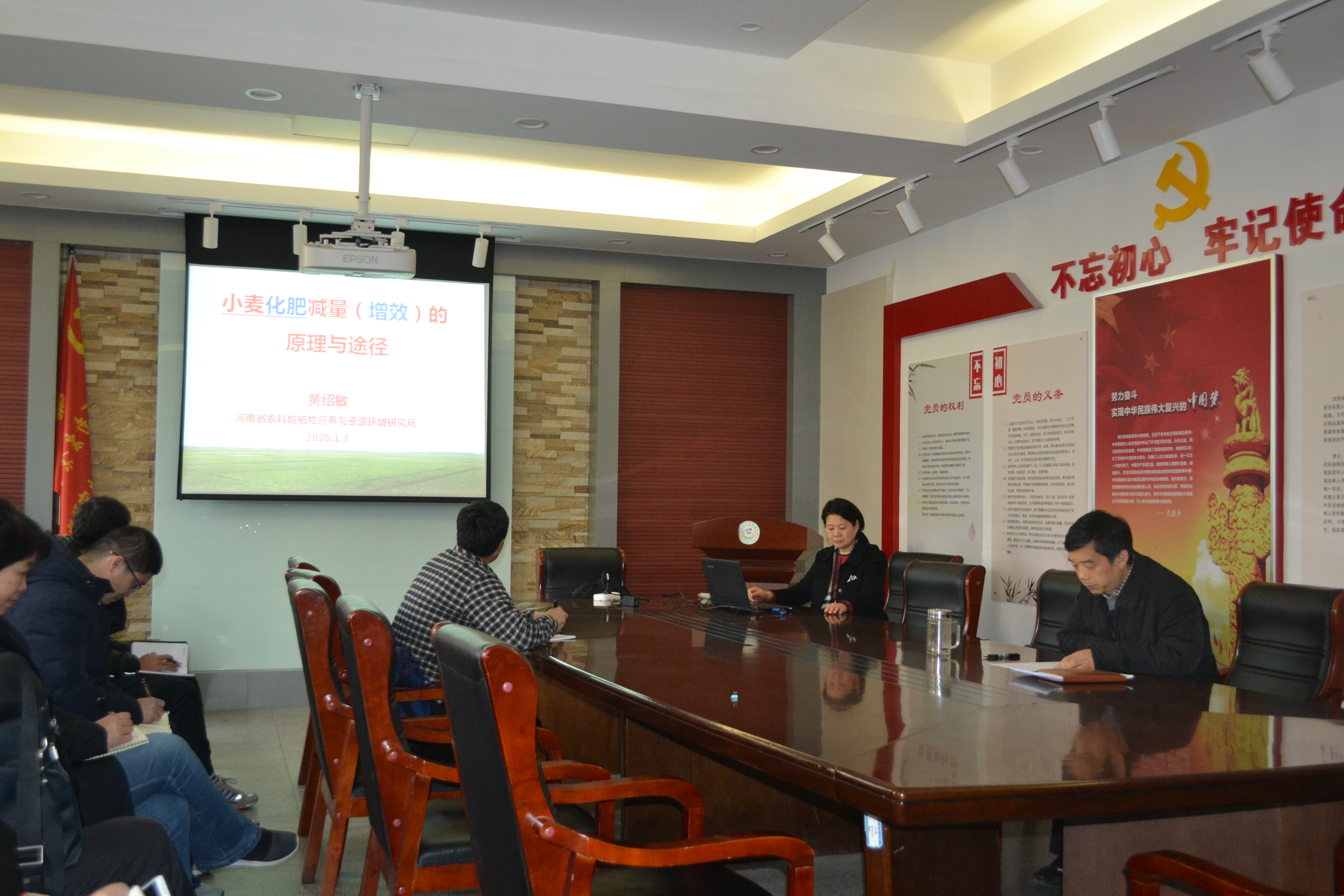 黄绍敏研究员介绍了我国施肥技术从经验施肥到精准施肥的发展历程、河南省近30年土壤肥力变化情况,明确了河南省化肥减量的潜力。着重阐述了优质强筋小麦的氮素需求特征,产量9t/ha时优质强筋小麦的全生育期氮肥施用策略。结合潮土长期定位试验基地开展的不同形态氮磷肥效应、氮高效品种筛选、秸秆替代化肥等科研工作,总结得出良田、良种、好肥必须配以好的管理措施才能获得小麦高产,最终达到化肥减量增效。