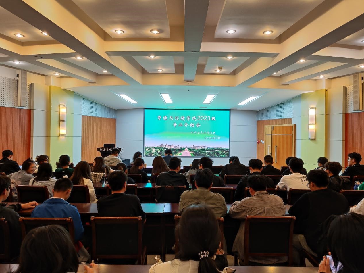 于10月10日晚在文化路校区第三报告厅举行环境生态工程专业介绍会。土壤环境系主任马双龙,教师代表郑凤君、李芳、宋佳、高博强,23级辅导员邓晓铮,以及全体环境生态工程新生参加。专会由马双龙老师主讲。