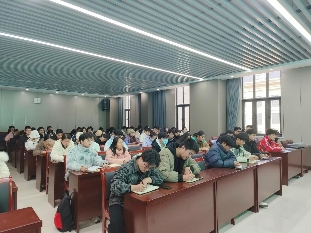 会上,王梦茹老师强调了日常请假制度和近期重点工作,要求大家自觉遵守各项管理规定。接着,胡明阳老师结合具体案例,再次向大家强调电信诈骗、宿舍安全、交通安全及流行疾病预防等问题,提醒同学们提高防范意识和能力。随后,黄春萌老师现场领学《本科教育教学审核评估应知应会手册》,要求大家用心学习并认真对待本次教育教学评估。