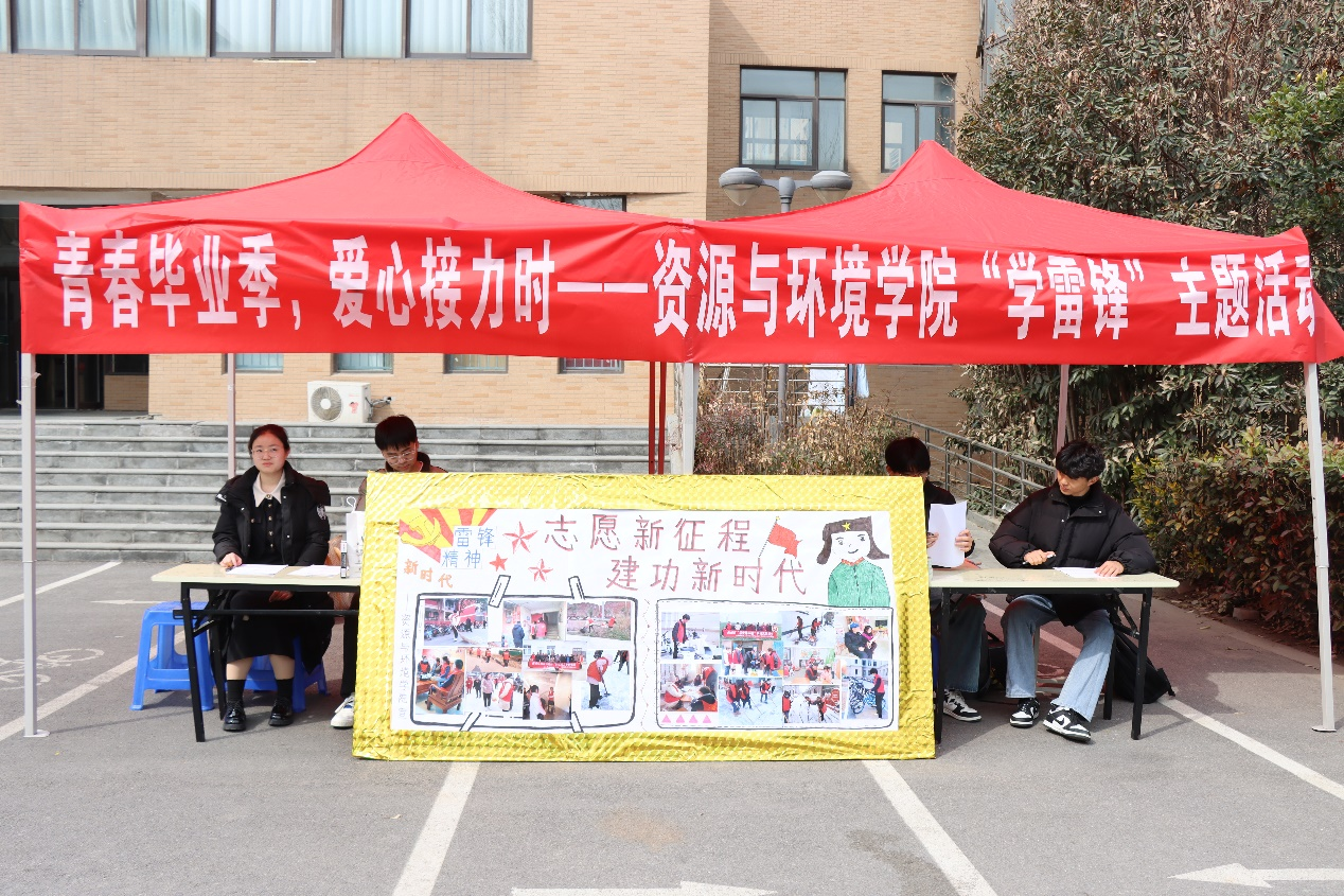 于3月10日在龙子湖校区桂花楼下组织开展“青春毕业季,爱心接力时”学雷锋旧物回捐主题活动。