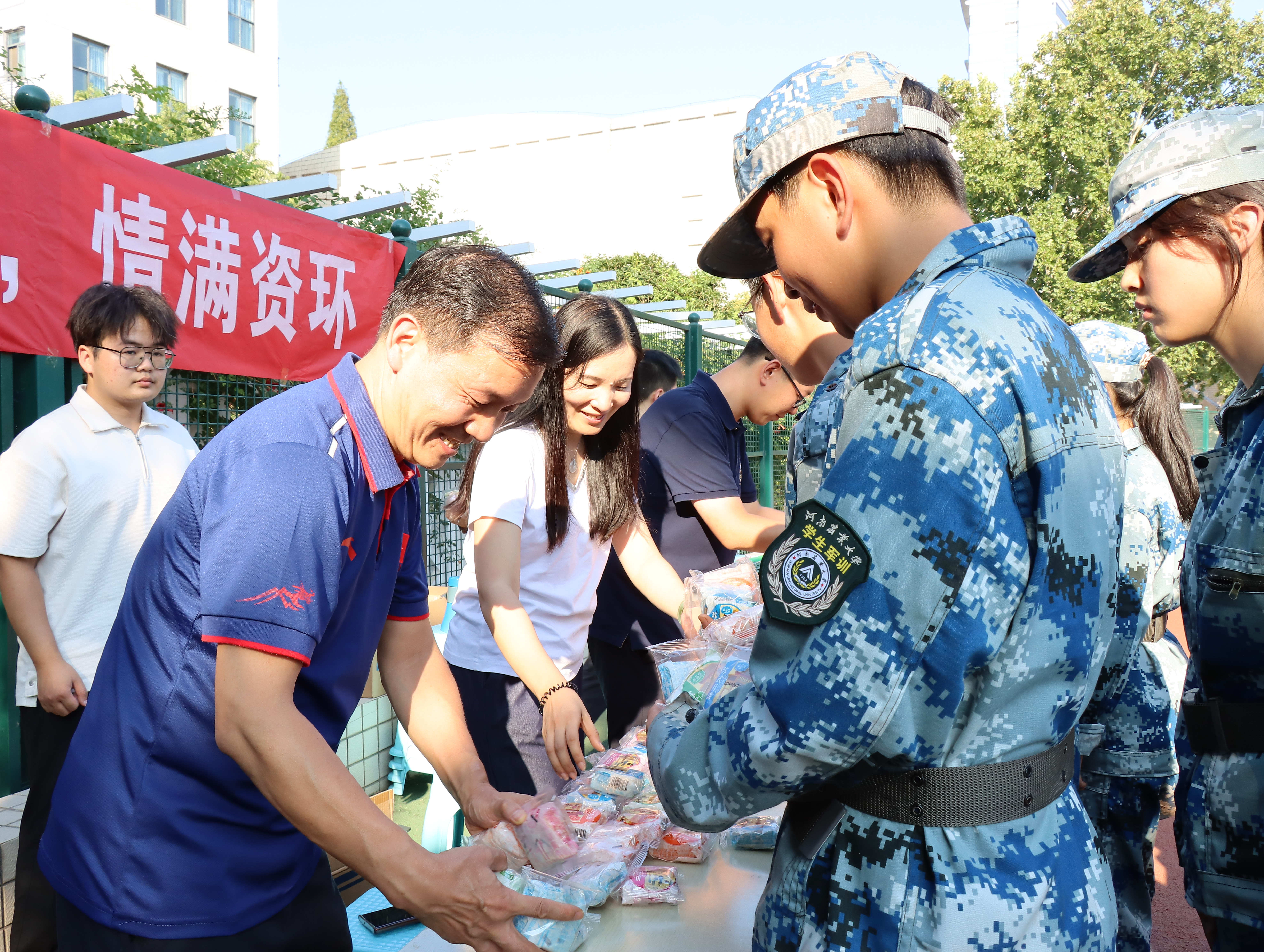 9月16日下午于文化路校区操场举行“月满中秋,情满资环”军训关怀活动。院党委书记李兴道,党委副书记陈景红,24级辅导员邓晓铮共同出席。