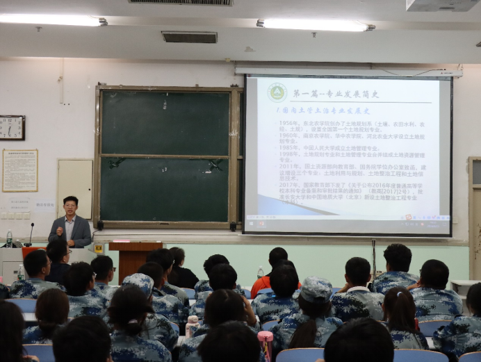 于9月23日晚在文化路校区工程楼103室举办土地整治工程专业介绍会。副院长李玲、土地整治工程专业老师李栋浩、刘思源、史新杰出席会议,24级全体土地整治工程专业新生参加会议,会议由土地资源管理系副主任吴用主讲。