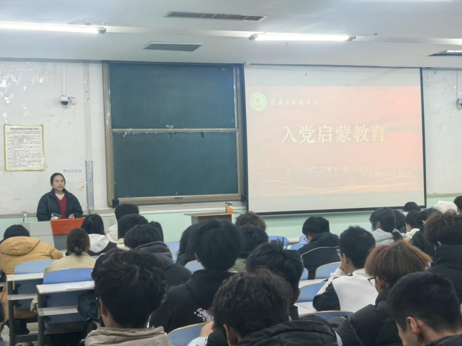 于11月26日在文化路校区工程楼304教室开展新生入党启蒙教育。此次活动由院学生第七党支部组织委员冀文凤主讲,2024级全体学生参加。