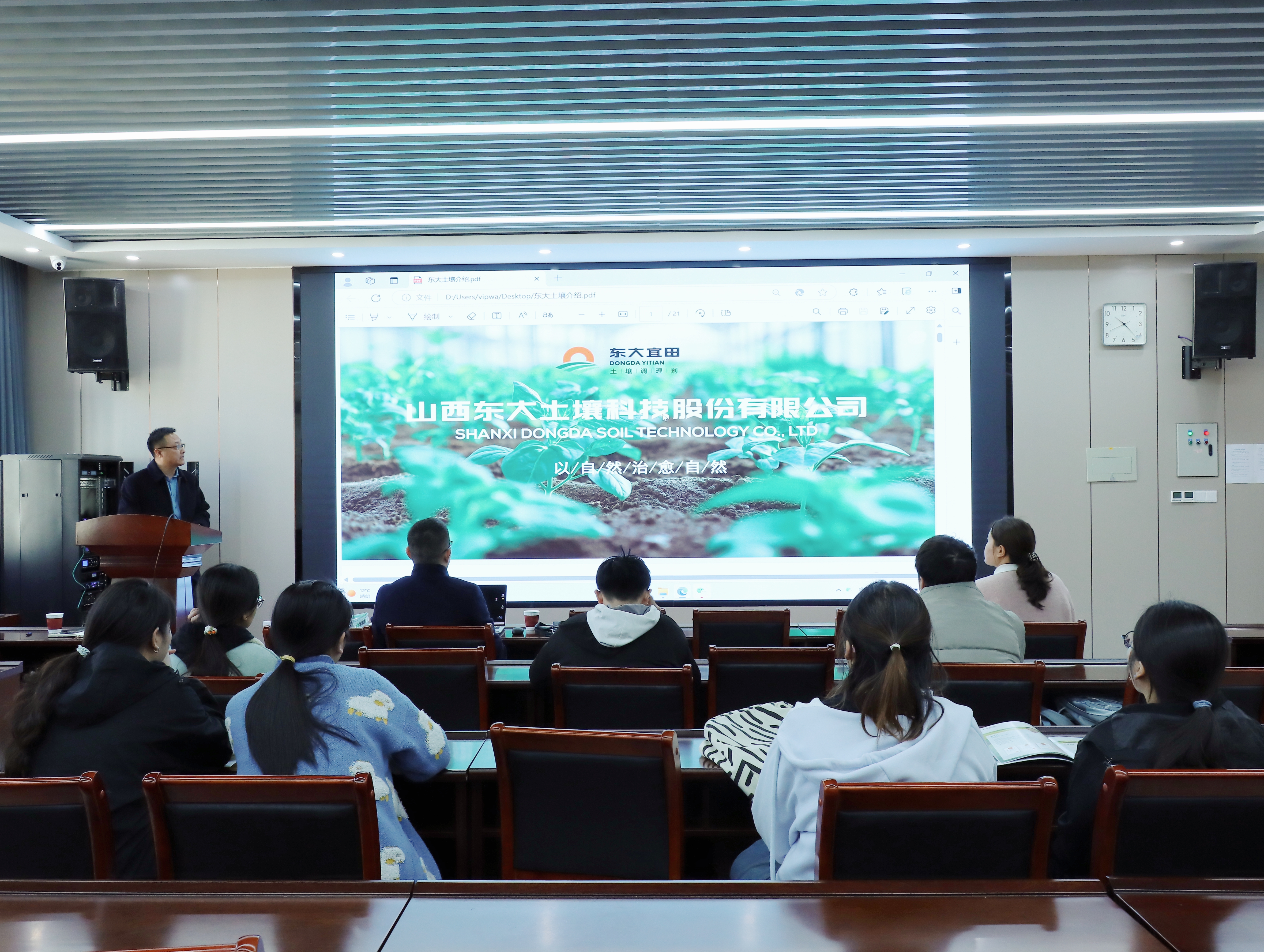 在龙子湖校区力行楼中338会议室举行东大土壤科技股份有限公司专场招聘宣讲会,毕业生辅导员黄春萌及部分2025届毕业生共同参加。