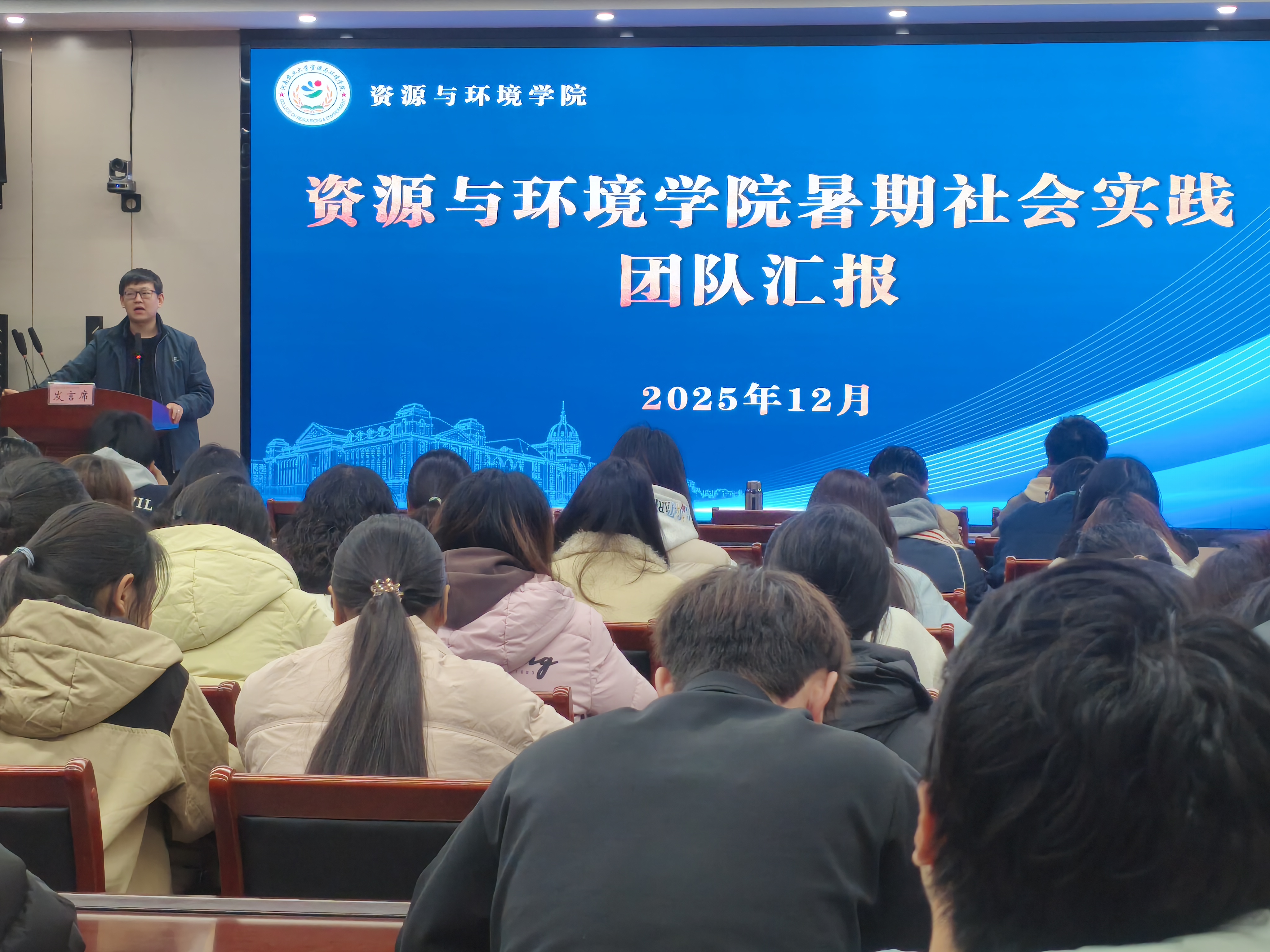 汇报会上,各小组通过PPT演示、纪实视频播放等多元形式,生动分享了在社会实践中的见闻收获、感悟思考。同学们深入基层一线、走进社会大课堂,不仅提升了实践技能和团队协作能力,更增强了社会责任感与使命感。最后,邓晓铮对团队的实践成果进行点评,既肯定了同学们在实践中的用心投入与扎实表现,也针对实践内容深化、成果总结提炼给出指导性建议。