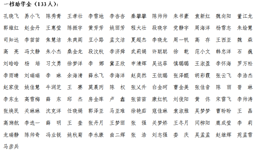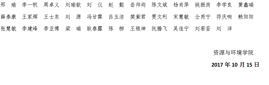 资环太阳城App 2017-2018年度国家助学金获得者名单公示
