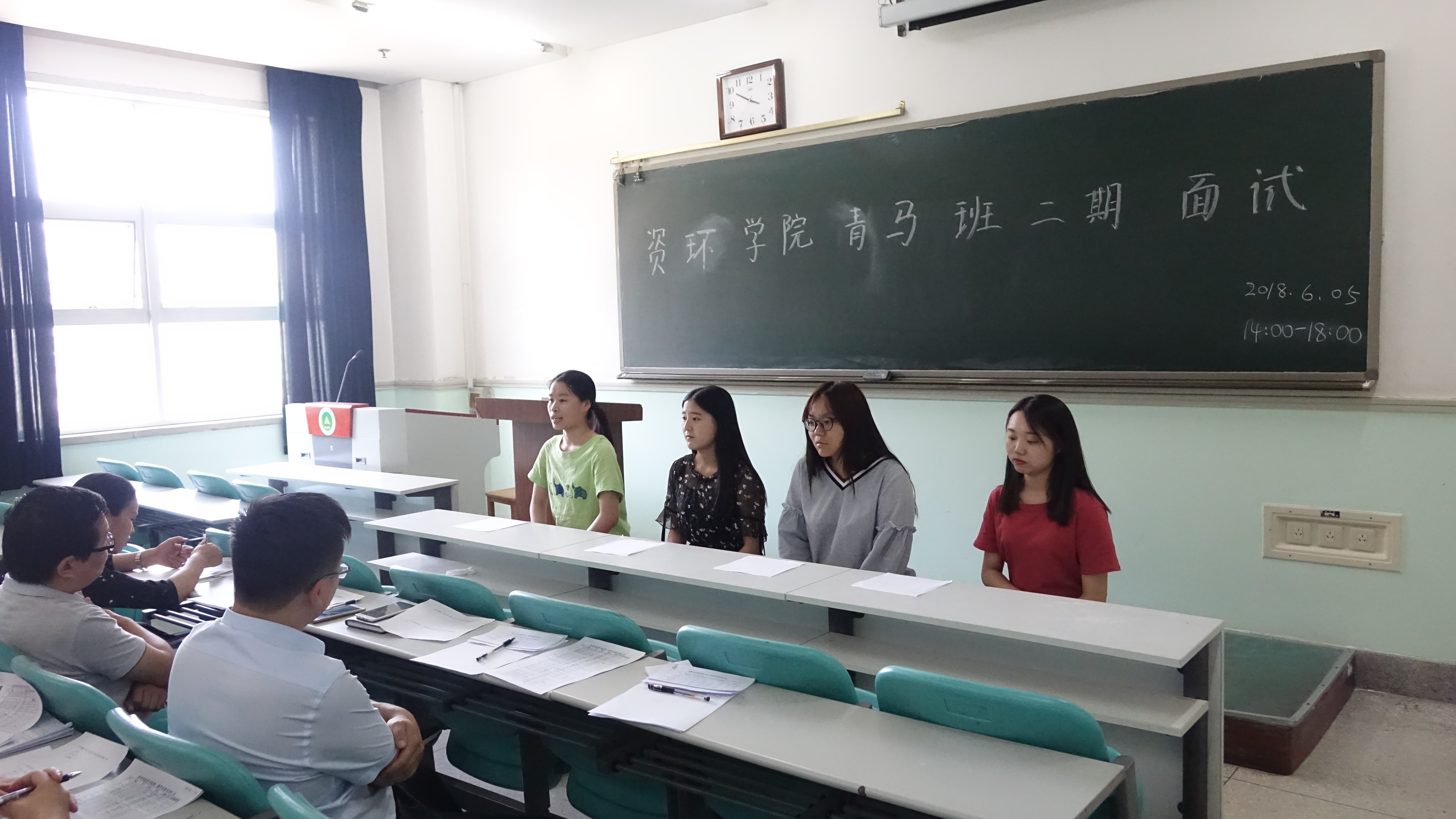 下午3点,活动准时开始。面试分两部分进行,首先是自我介绍环节,面试者自述任职经历、社会实践经历、兴趣爱好等。不少参加面试的同学有丰富的学生干部经历,也有很多同学在学术科研、社会实践以及志愿服务等方面有丰硕的成果,并在自我介绍中表达出对于参加“青马工程”、锻炼提升自己的意愿;接下来是结构化面试环节,问题涉及对“青马工程”的理解与认识、对当下时事政治和社会热点问题的关注与见解以及与党的十九大精神等有关的基础政治理论知识,考察应试者的思想政治修养和对时事热点的敏感度。面试者准备充分,一一应答,其中不乏深刻独到的观点。
