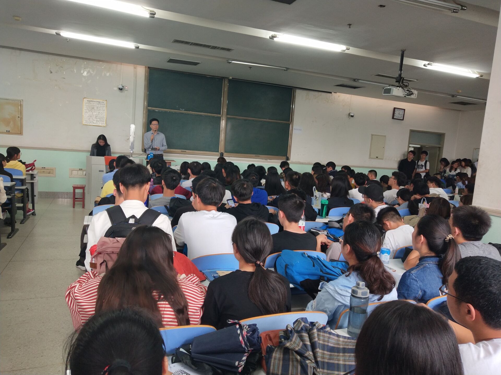 于文化路校区工程楼302教室召开2018学年奖助学金评定会议。院党委副书记李强、院团委书记王玲、辅导员李岚涛以及15、16、17级班委和宿舍长参加此次会议。
