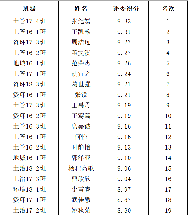 源与环境太阳城App 第十三届十佳大学生现场面试得分公示