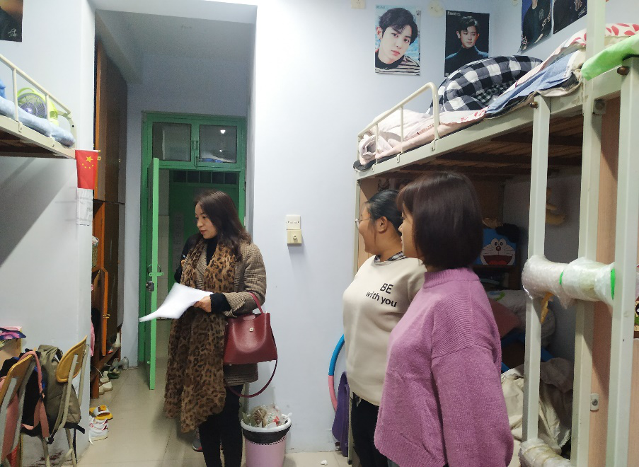 团委书记王玲、辅导员宋艳粉、李栋浩深入走访各学生宿舍,详细了解学生们的生活情况。
