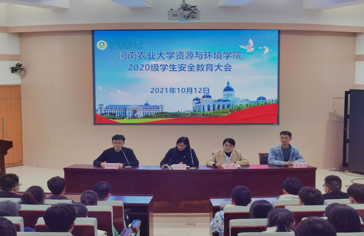 于文化路校区300人报告厅组织召开了2020级学生安全教育大会。院党委副书记陈景红,院团委书记王岚,团委老师胡明阳、霍培杰及2020级全体学生参加会议。