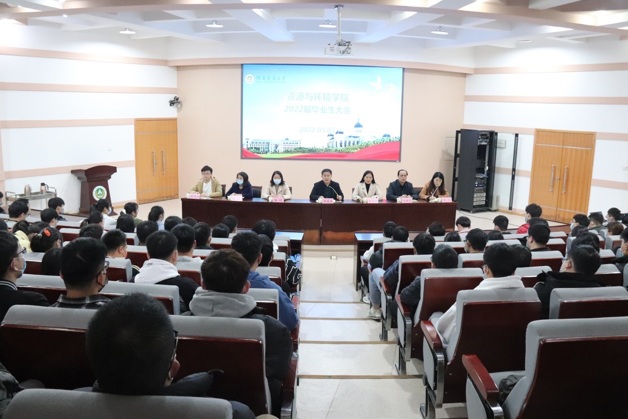 于文化路校区300人报告厅组织召开2022届毕业生大会,院党委书记毕庆生、党委副书记陈景红、副院长杨璟、副院长刘世亮、副院长李玲,院团委书记王岚、团委辅导员胡明阳、霍培杰、胡亚瑾及太阳城App