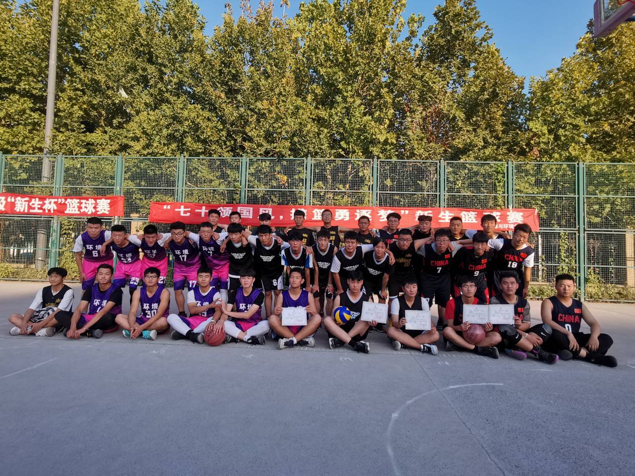 于龙子湖校区篮球场成功举办“七十颂国风,携篮永逐梦”新生篮球赛决赛。