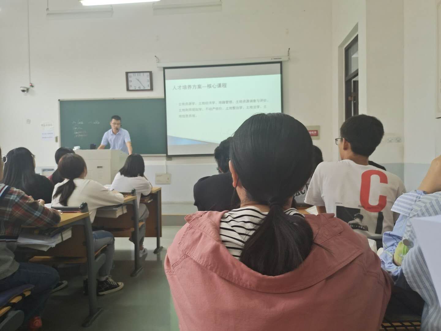 于9月29日上午在龙子湖校区E101为2020级新生开展了专业介绍会,土地资源管理系冯新伟老师及土管专业全体新生参加了此次会议。