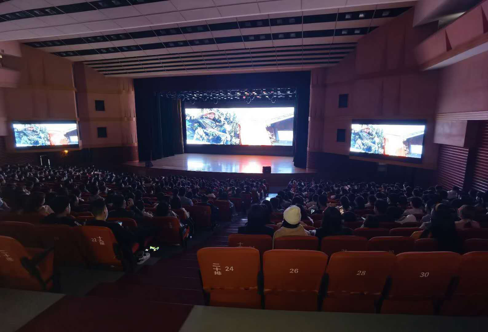 师生在千人大礼堂集体观看党史题材电影《大会师》。