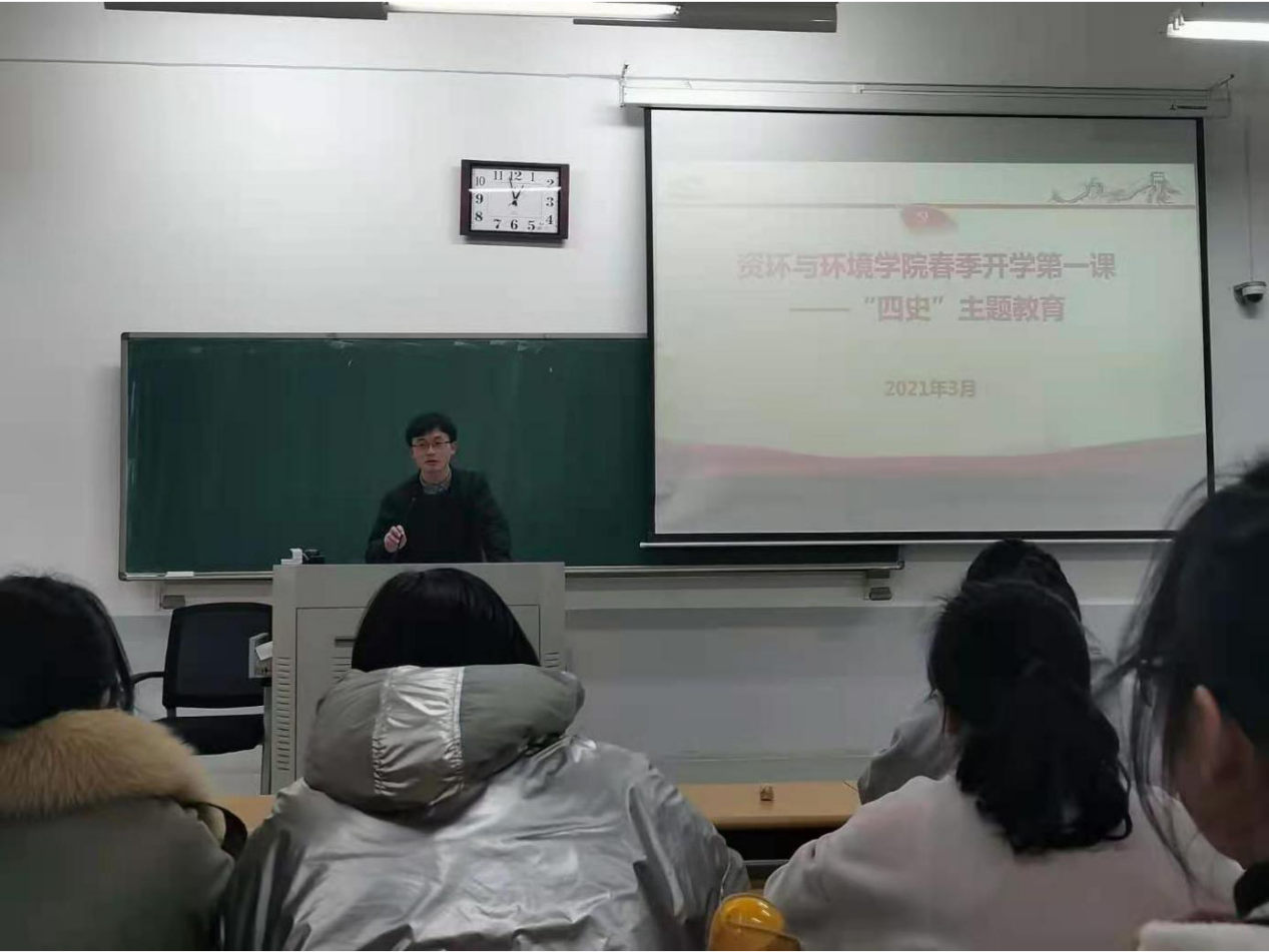 为做好新学期学生的思想引领和政治教育,增强同学们对党史、新中国史、改革开放史和社会主义发展史的了解,引导学生在学思践悟中坚定理想信念,在奋发有为中践行初心使命,太阳城App 于3月16日在龙子湖校区举行2021年春季开学第一课。本次“第一课”由团委老师胡明阳主讲,太阳城App 2020级学生参加了此次活动。