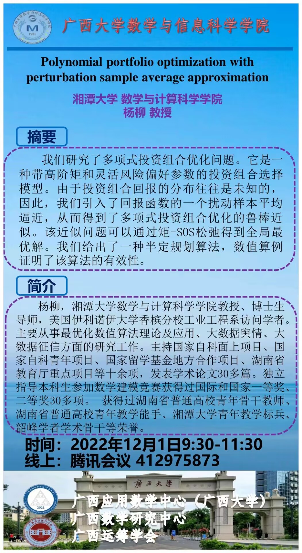 学术讲座:Polynomial portfolio optimization withperturbation sample average approximation