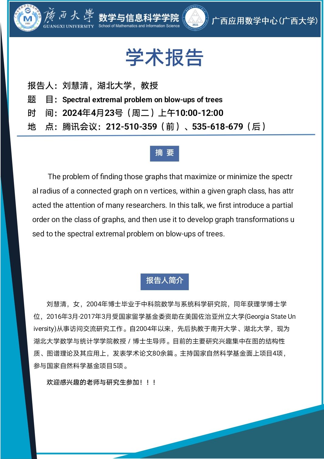 学术报告:The characterization of extremal graphs for spectral Turan problems