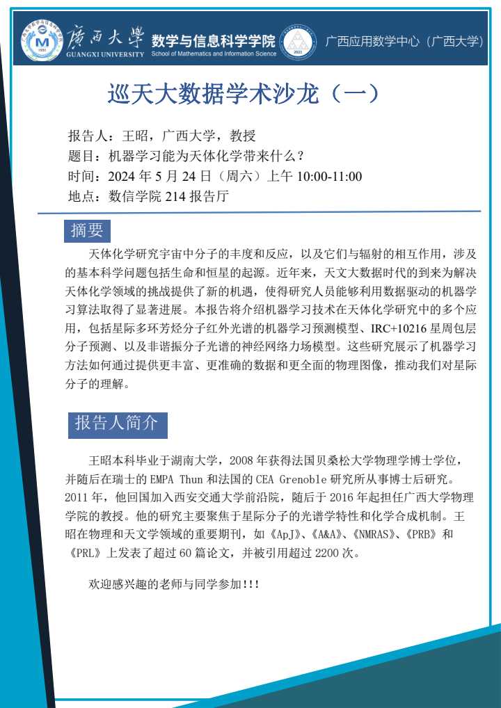 学术报告:机器学习能为天体化学带来什么?