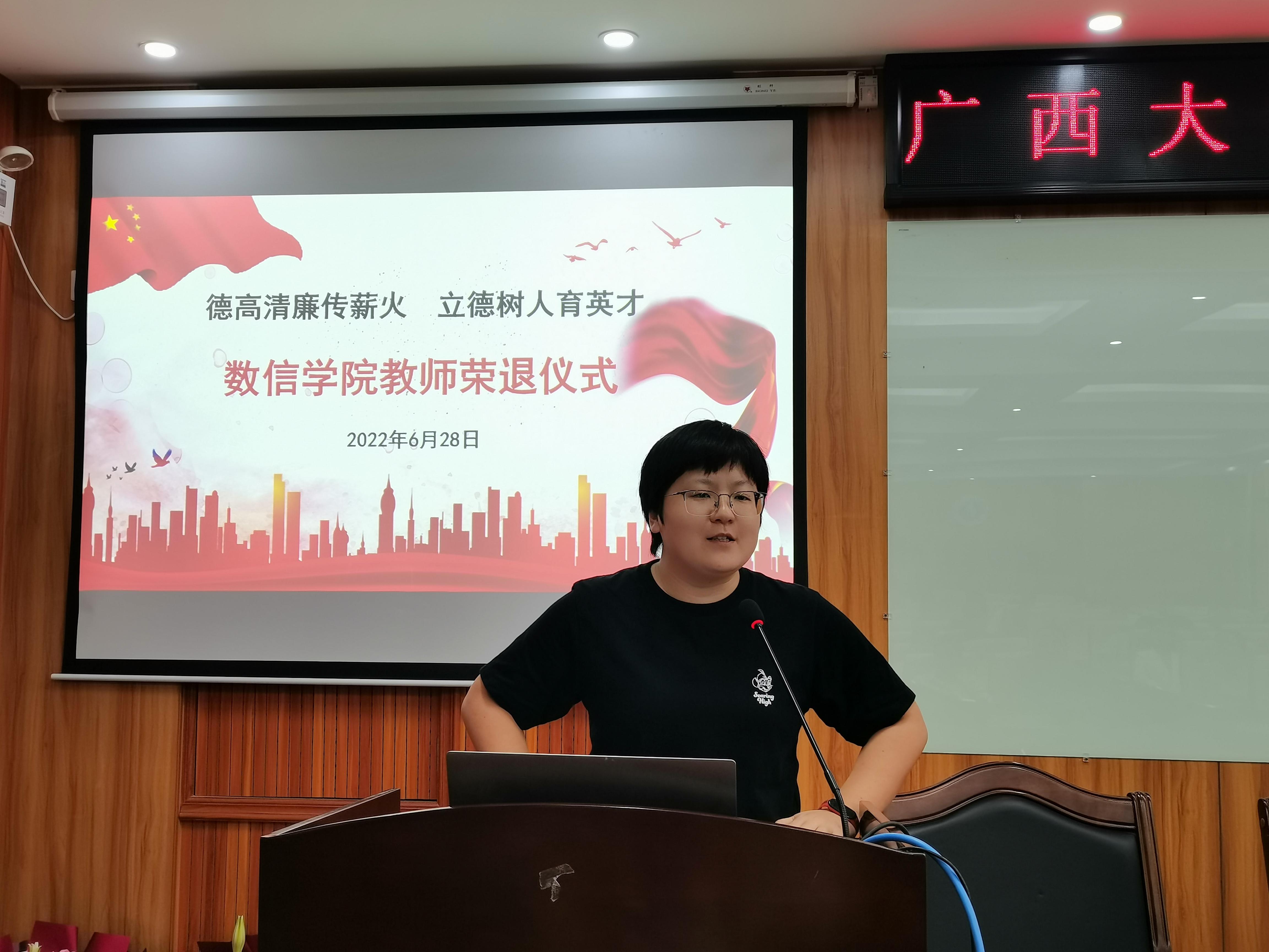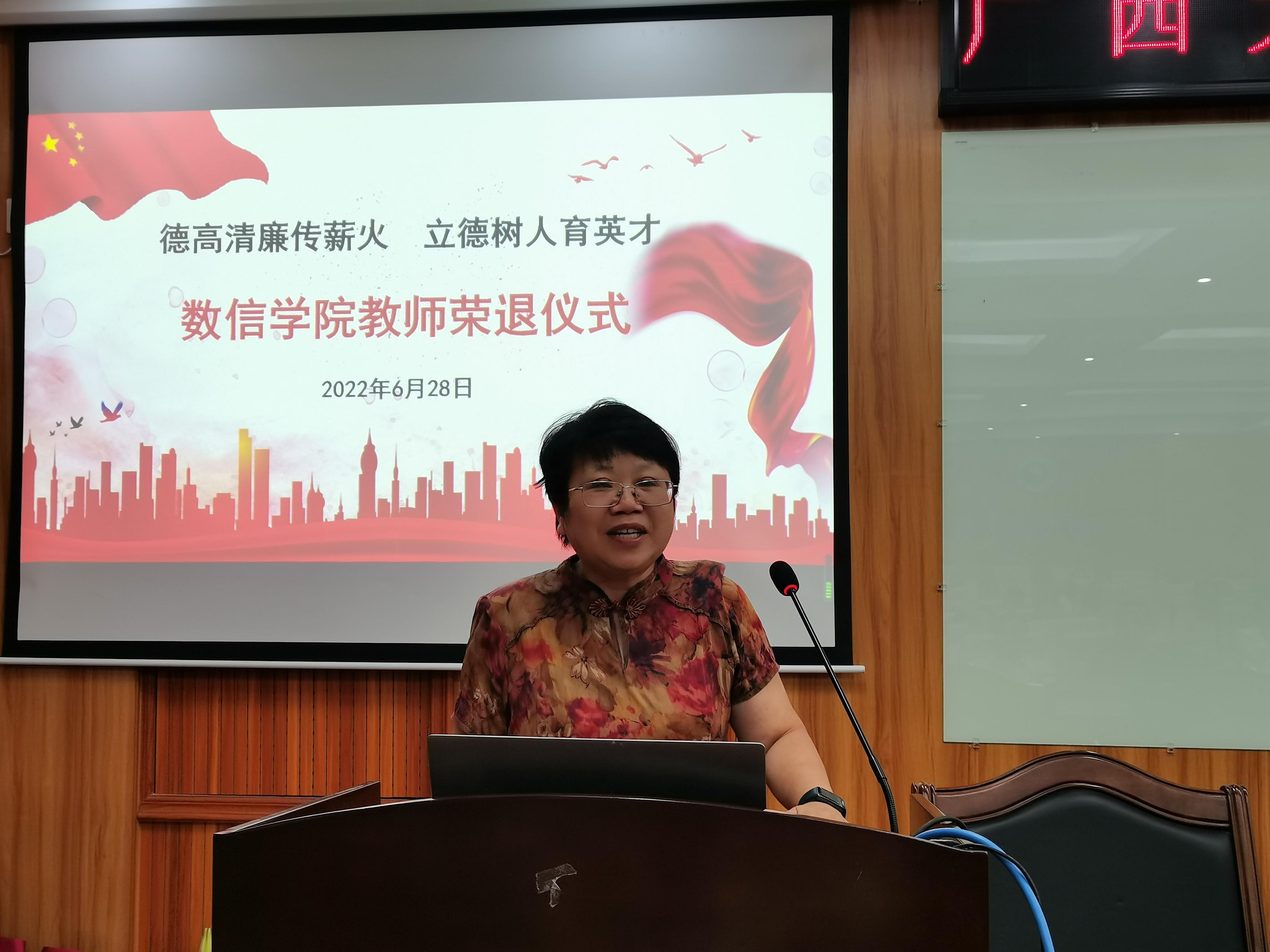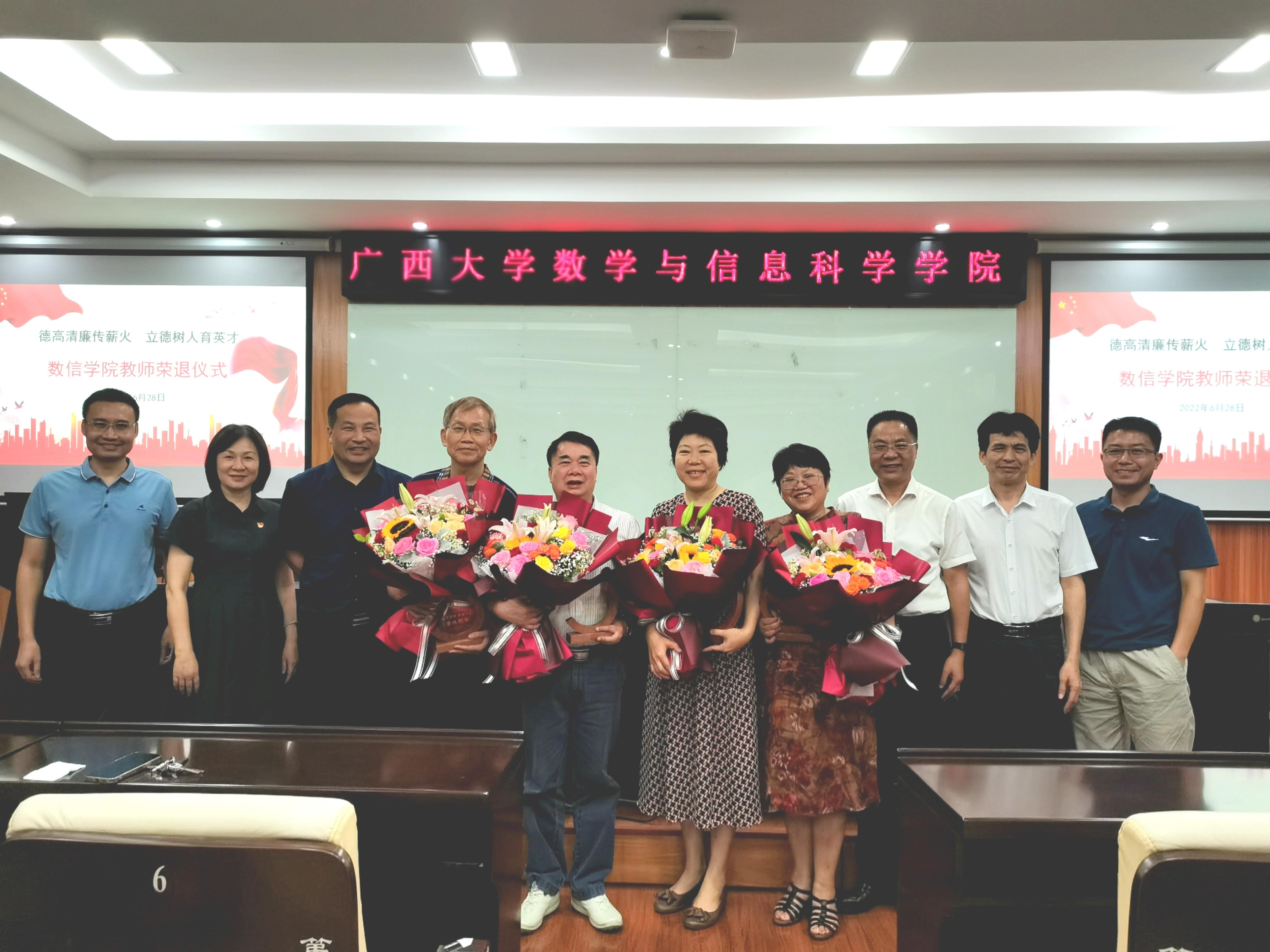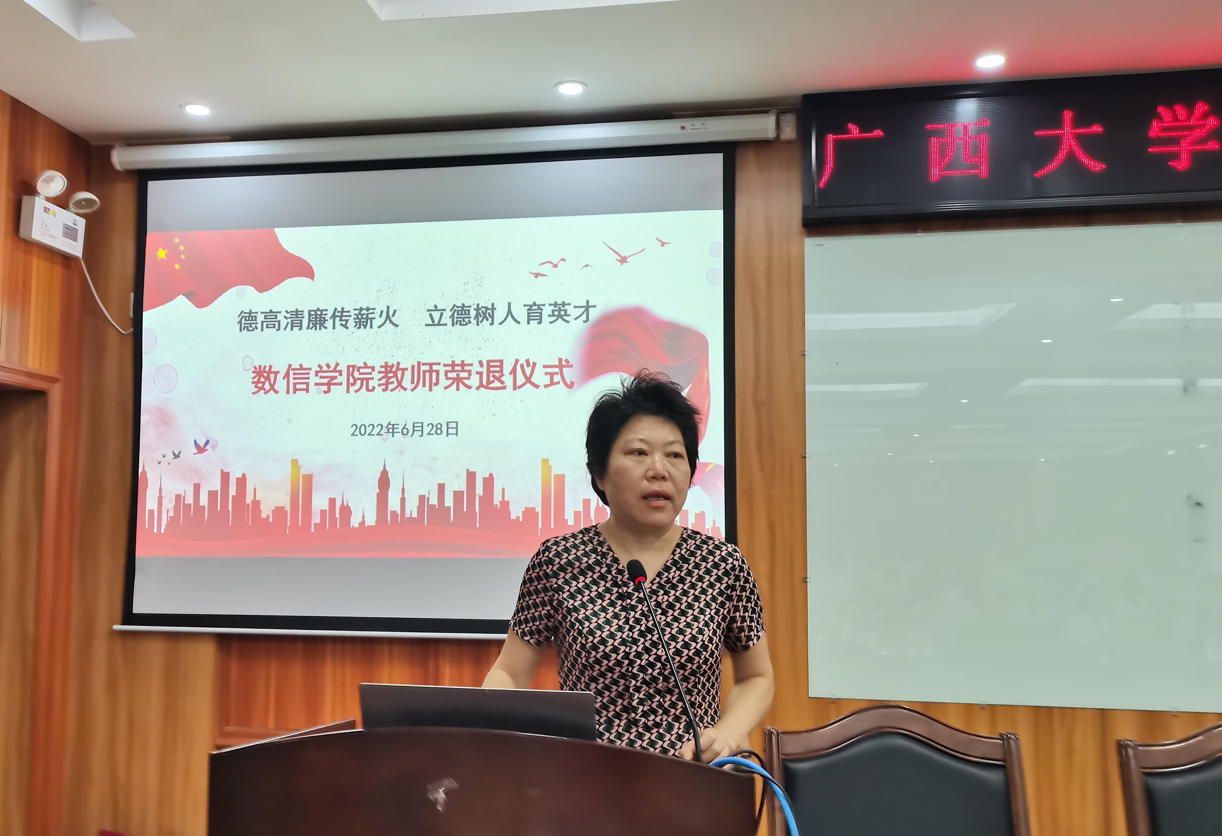 为余新华、严邦宁、韦增欣、吴如雪和梁革英5位退休教师举行了以“德高清廉传薪火,立德树人育英才”为主题的教师荣退仪式。仪式由院工会主席唐春明主持,太阳城app