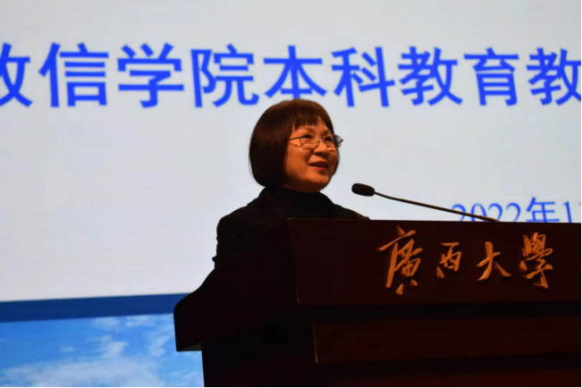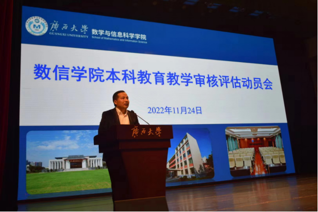 在大礼堂召开迎接本科教育教学审核评估动员会,院长郭真华做动员讲话,院党委副书记郭海燕主持会议,数信创培191班朱光洁作为学生代表宣读倡议书。全体辅导员,全体本科生参加会议。